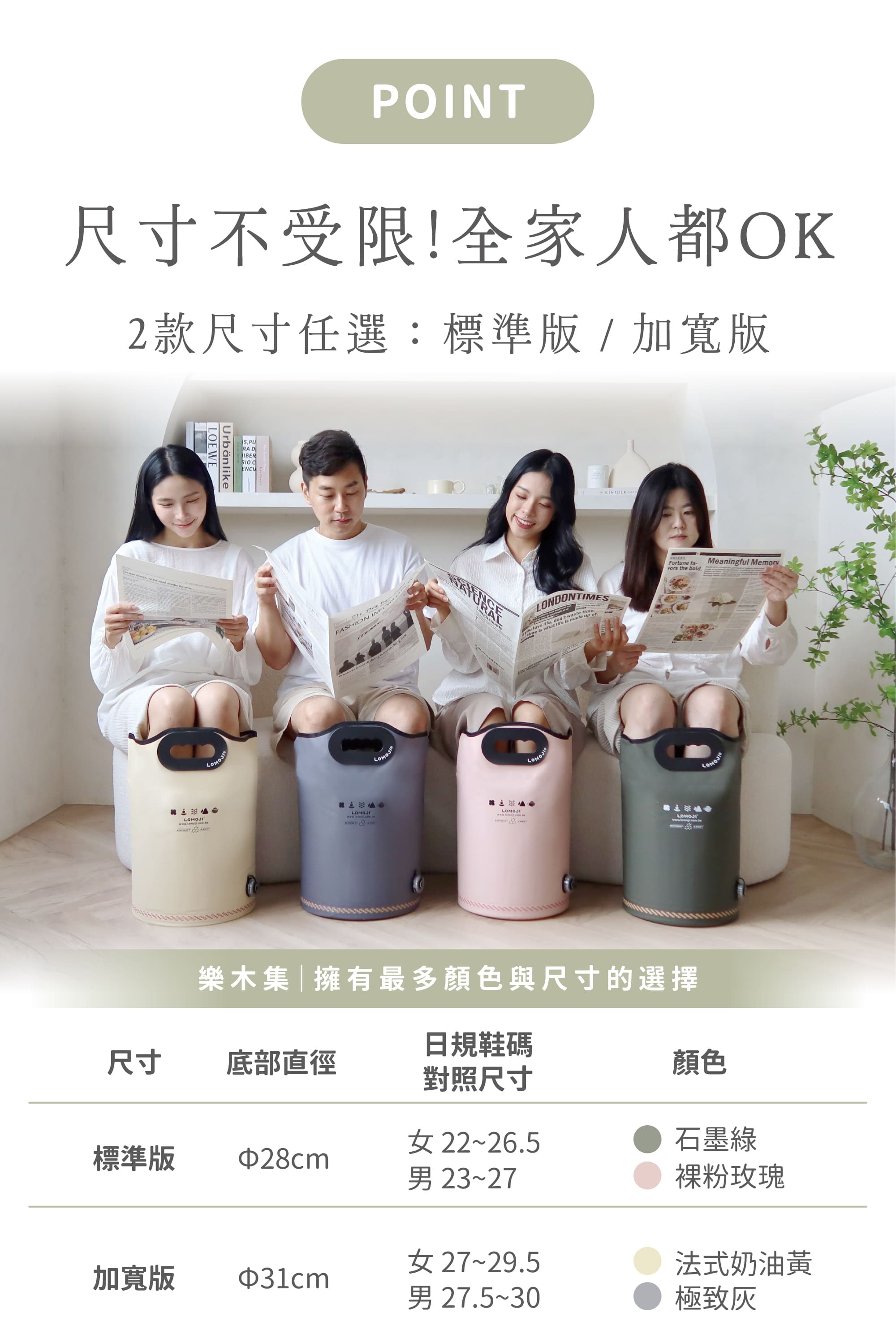 ①足浴袋 (兩款規格擇一) 標準版Ø28cm、加寬版Ø31cm 共5款顏色