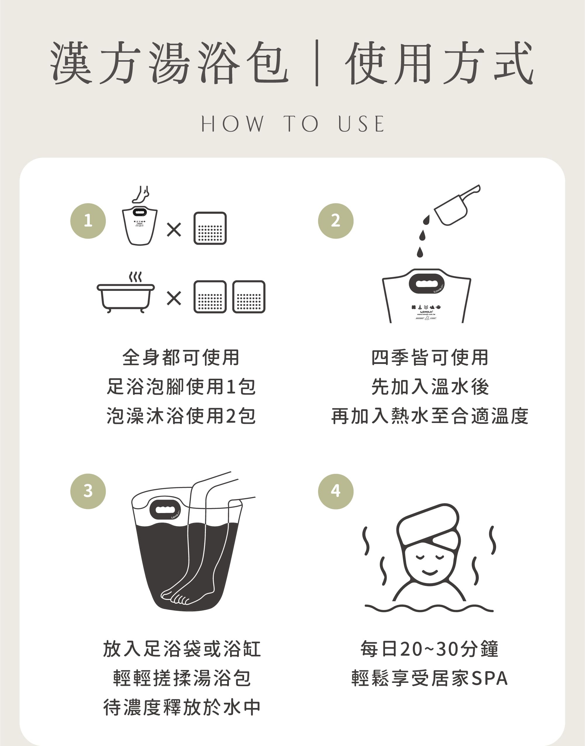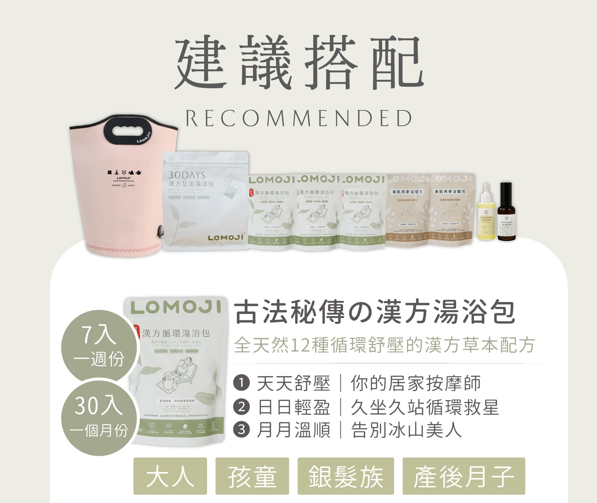 ②古法秘傳の漢方湯浴包,三款SPA主題一次擁有『天天舒壓7入、日日輕盈7入、月月溫順7入』共21入