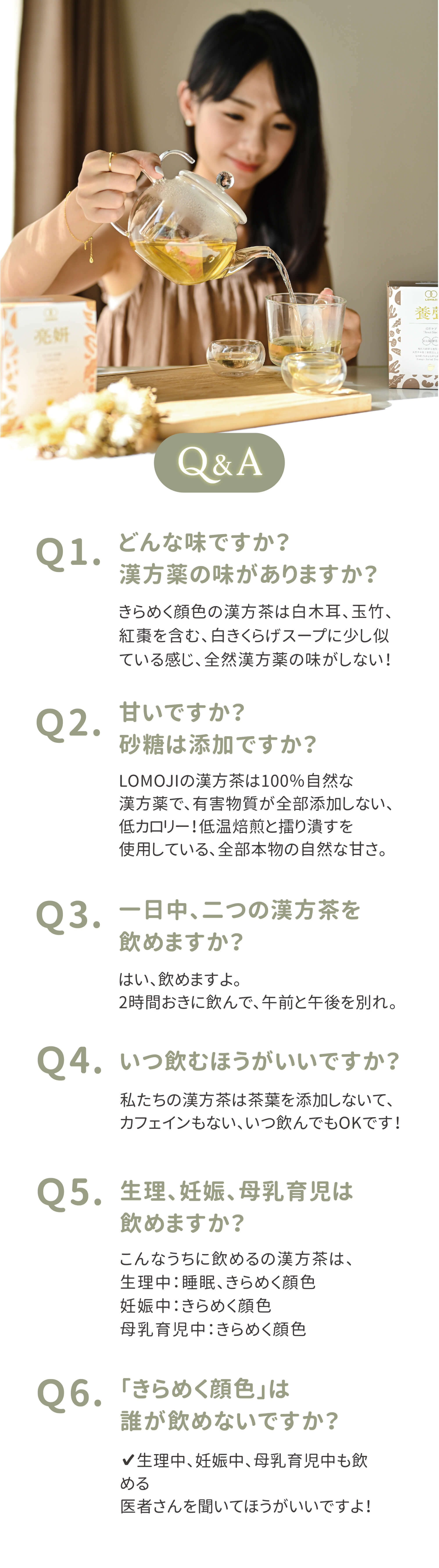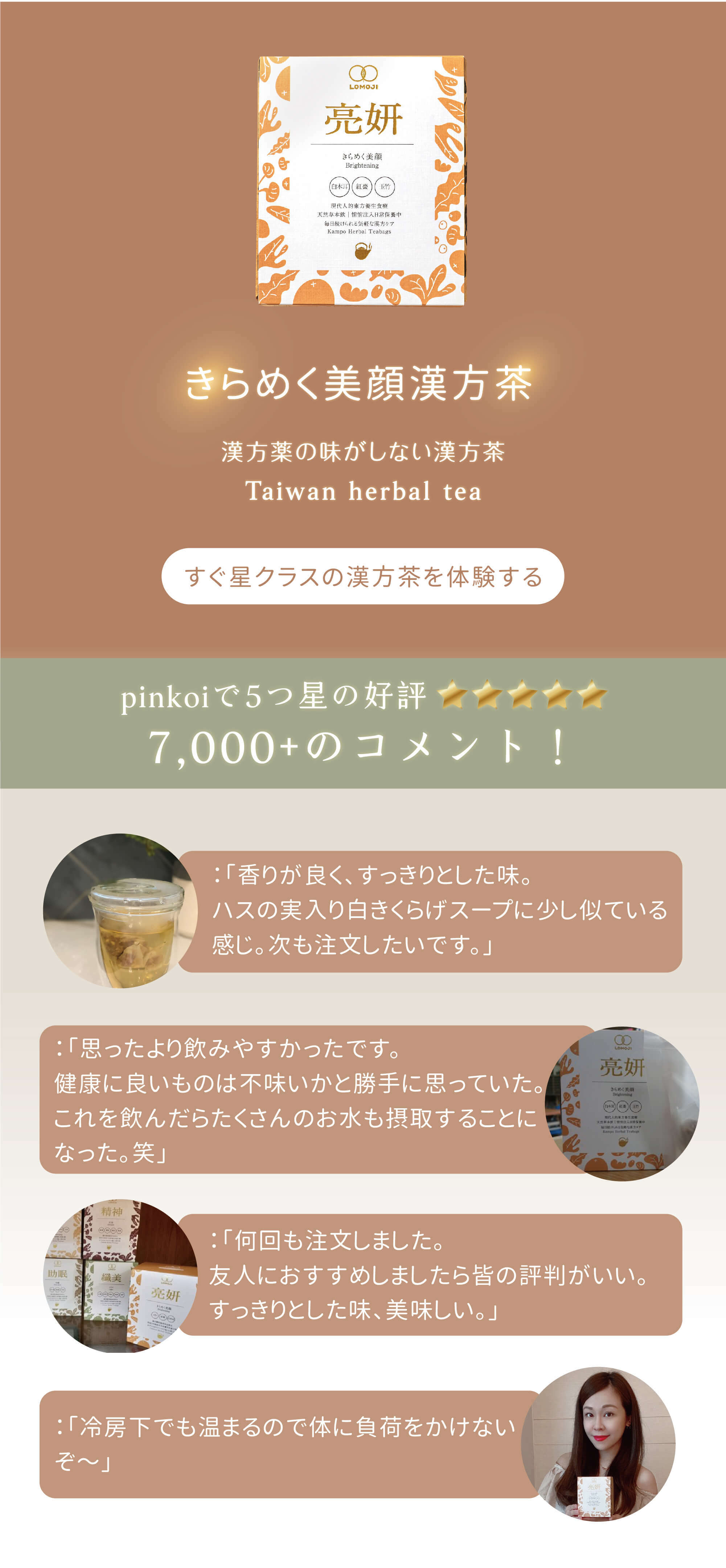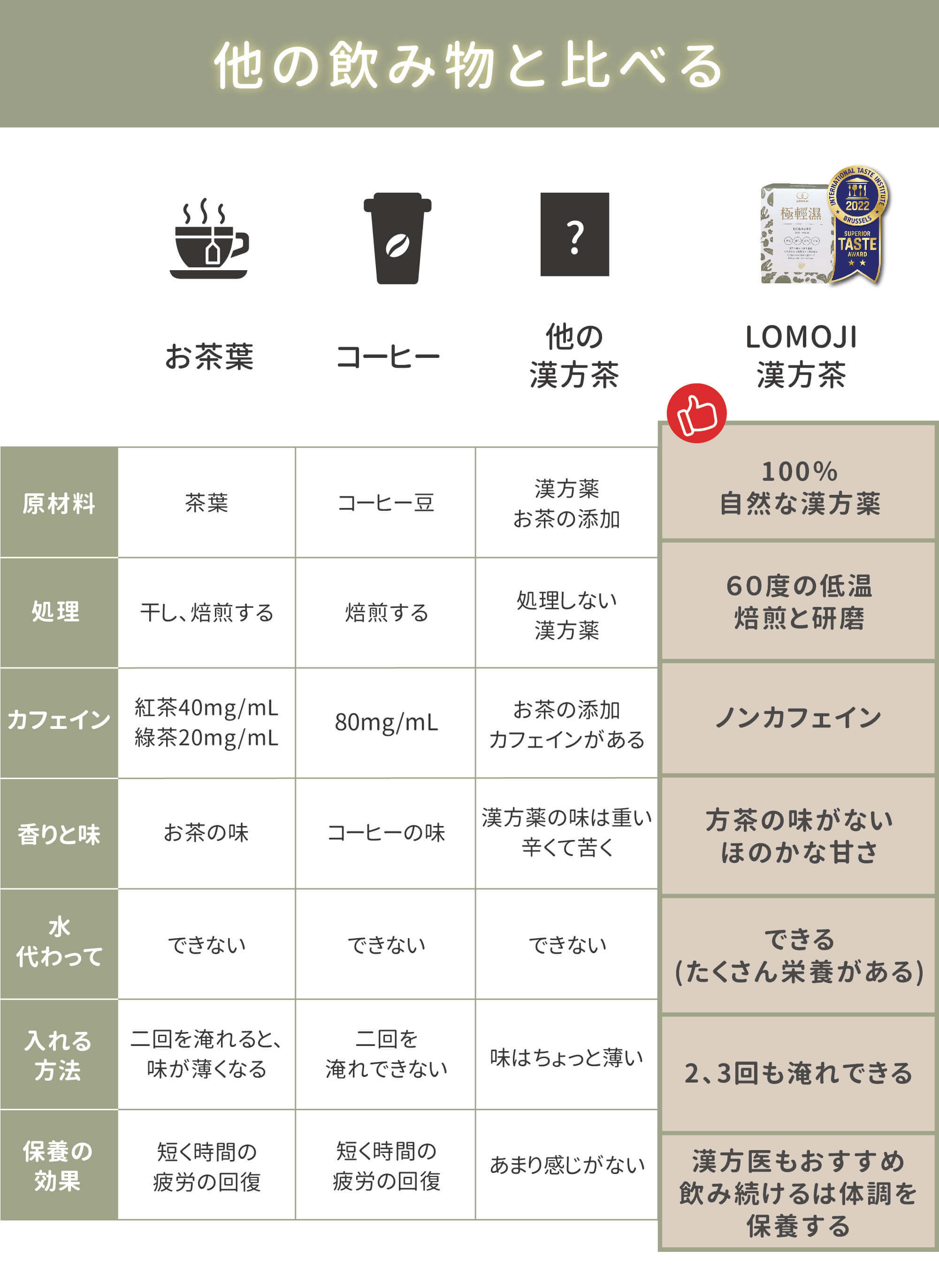 ・100%天然の漢方食材、無糖、カフェインゼロ、ほぼ0カロリーを堅持