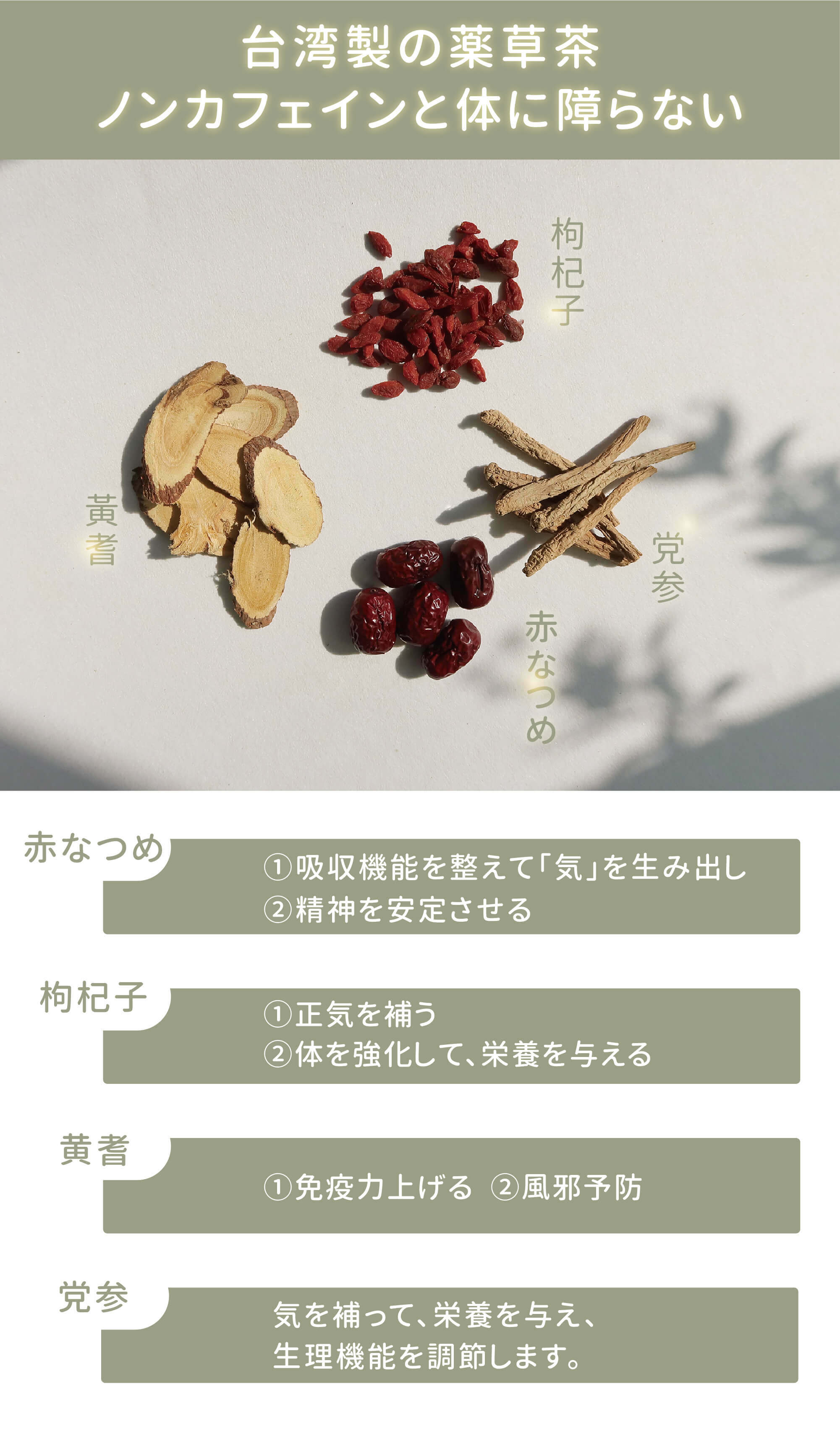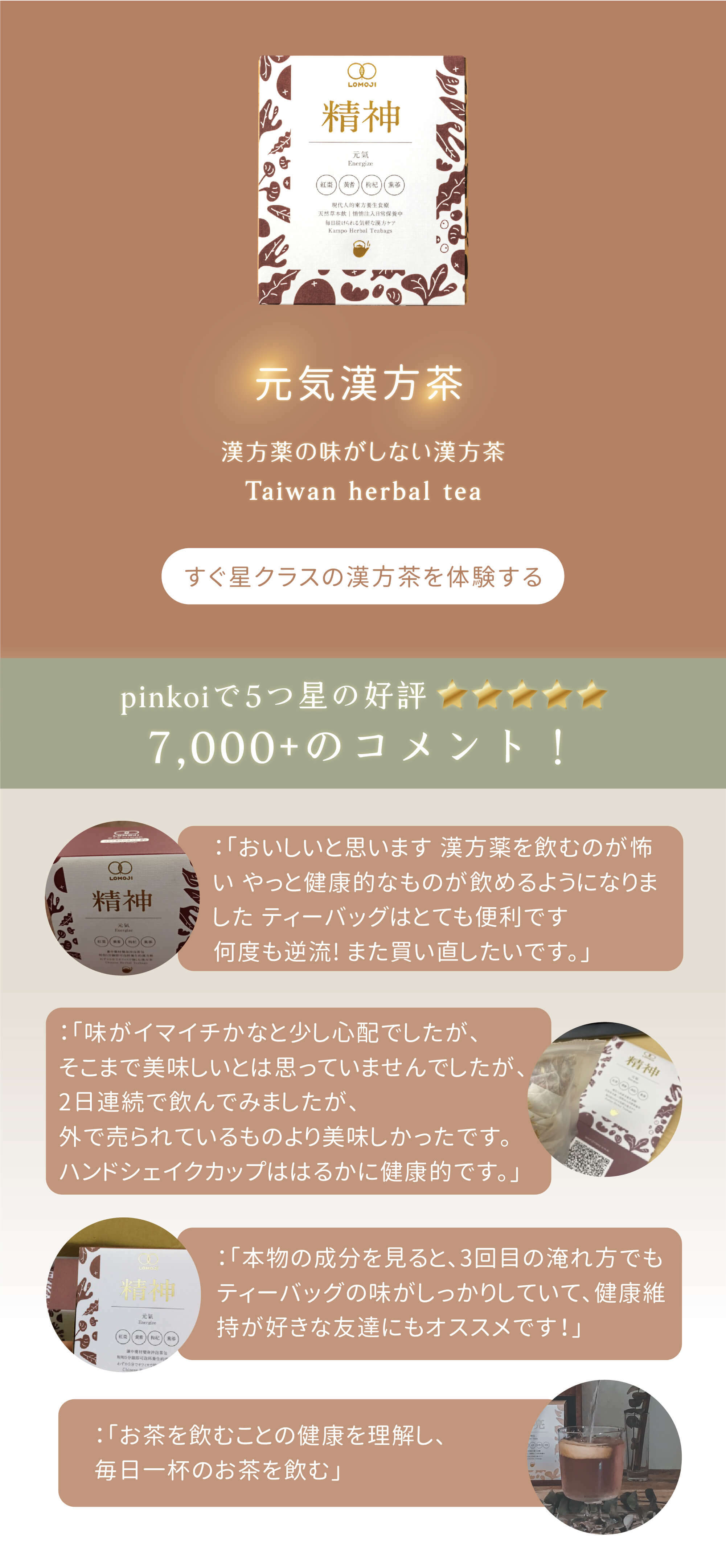 ・100%天然の漢方食材、無糖、カフェインゼロ、ほぼ0カロリーを堅持