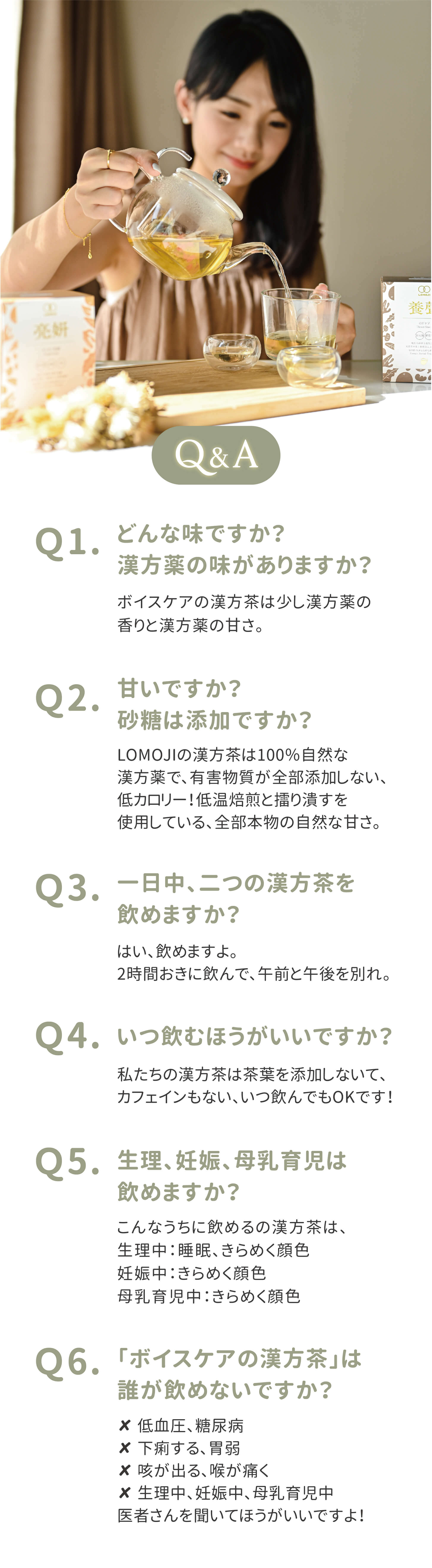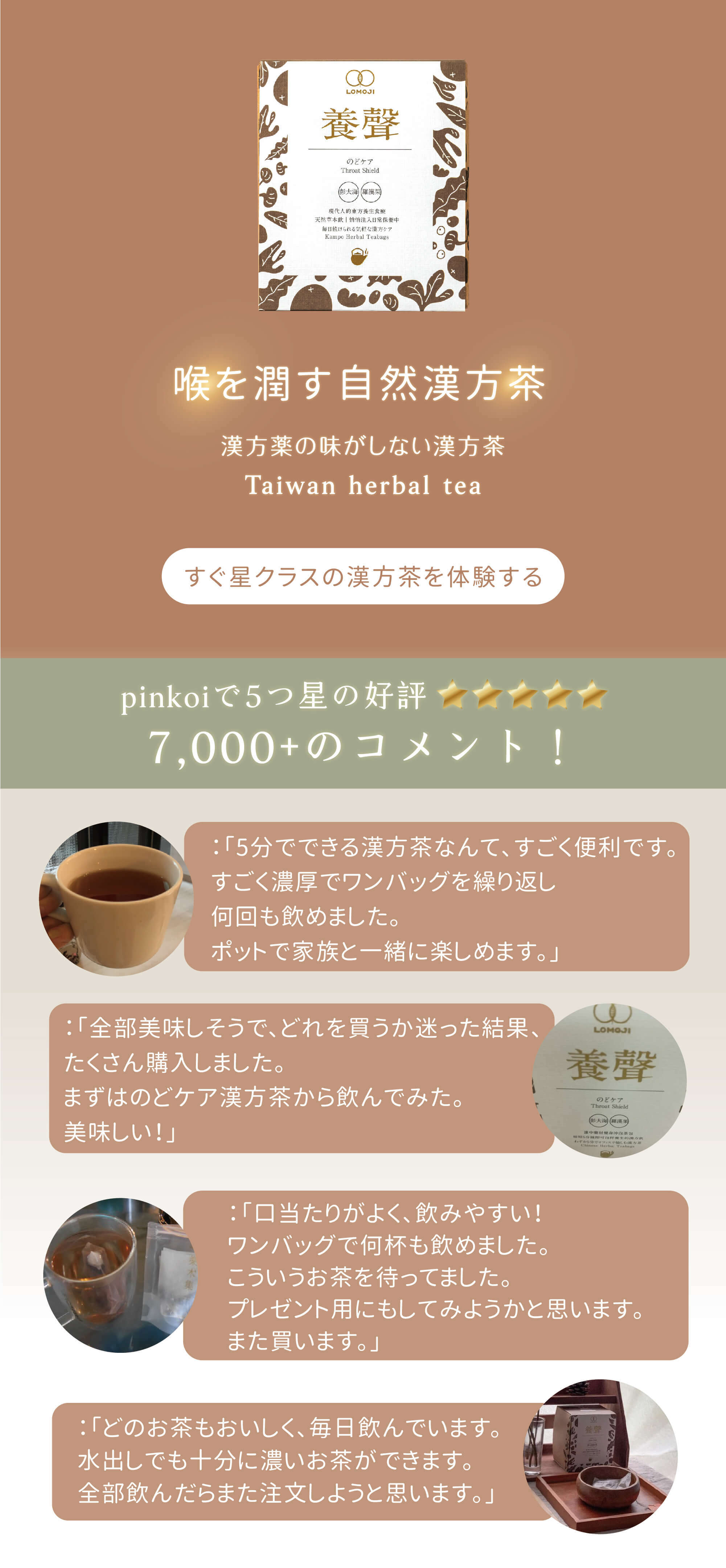 ・100%天然の漢方食材、無糖、カフェインゼロ、ほぼ0カロリーを堅持