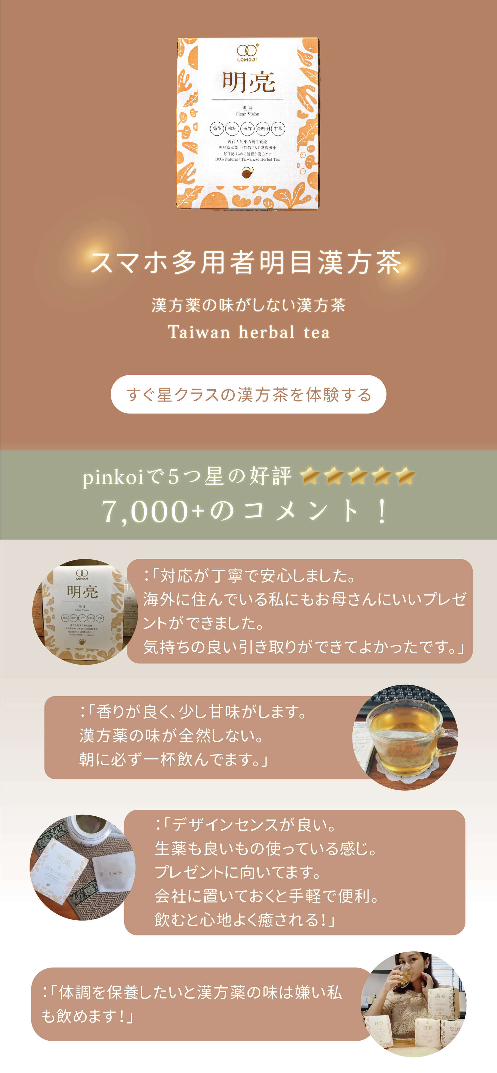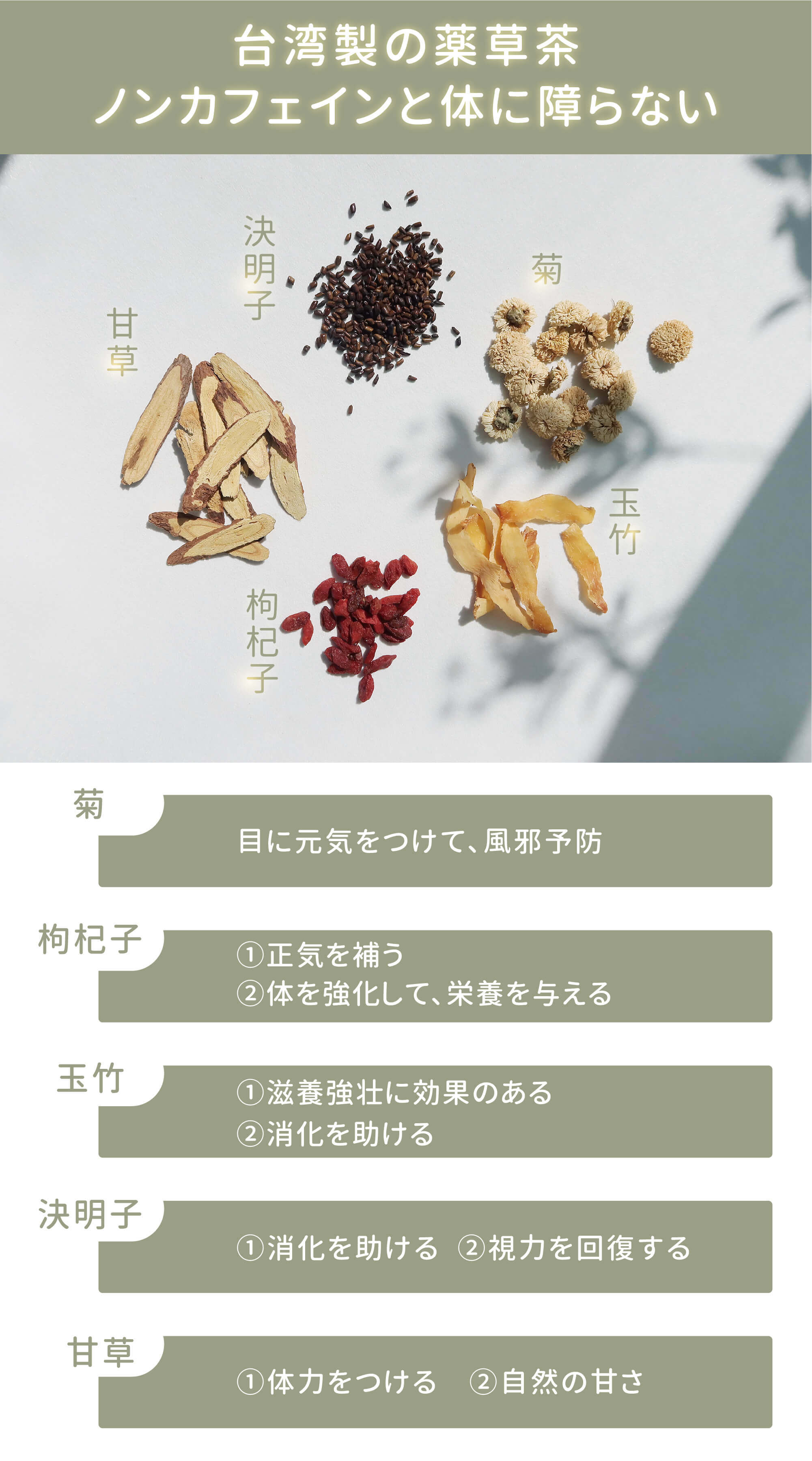 ・100%天然の漢方食材、無糖、カフェインゼロ、ほぼ0カロリーを堅持