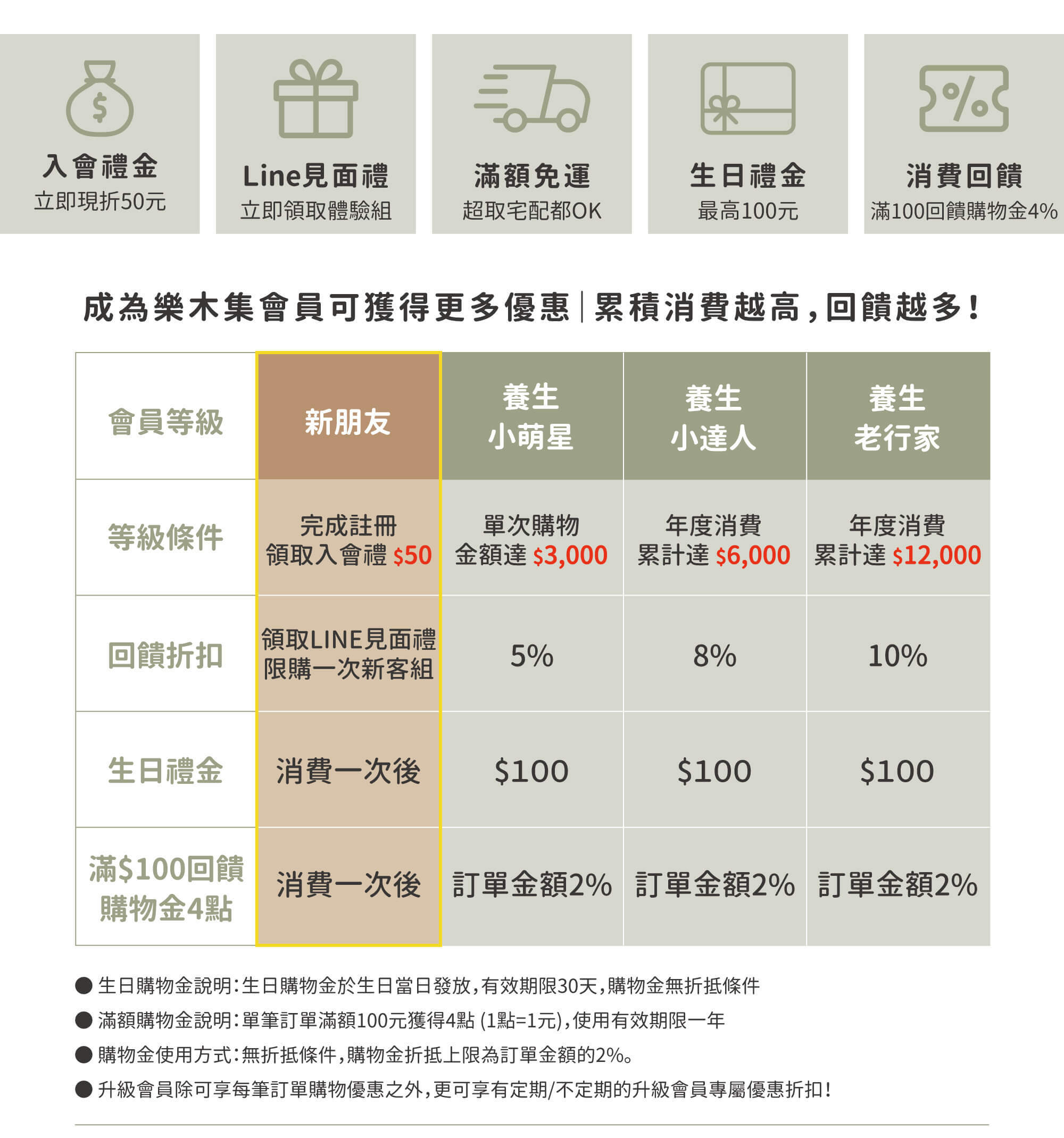 假設您的會員等級是『養生老行家』,今天消費 3600 元。你將可以得到以下優惠: