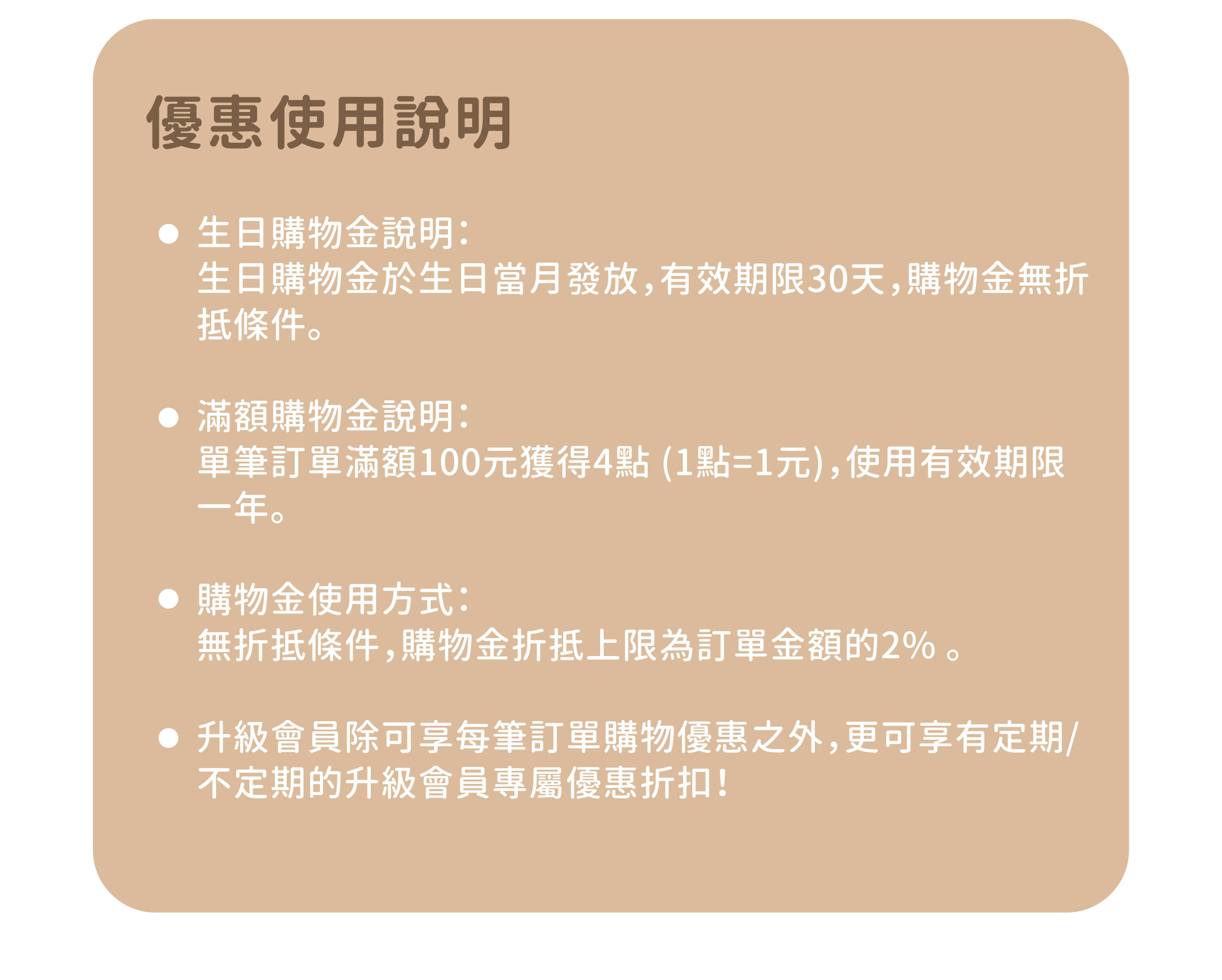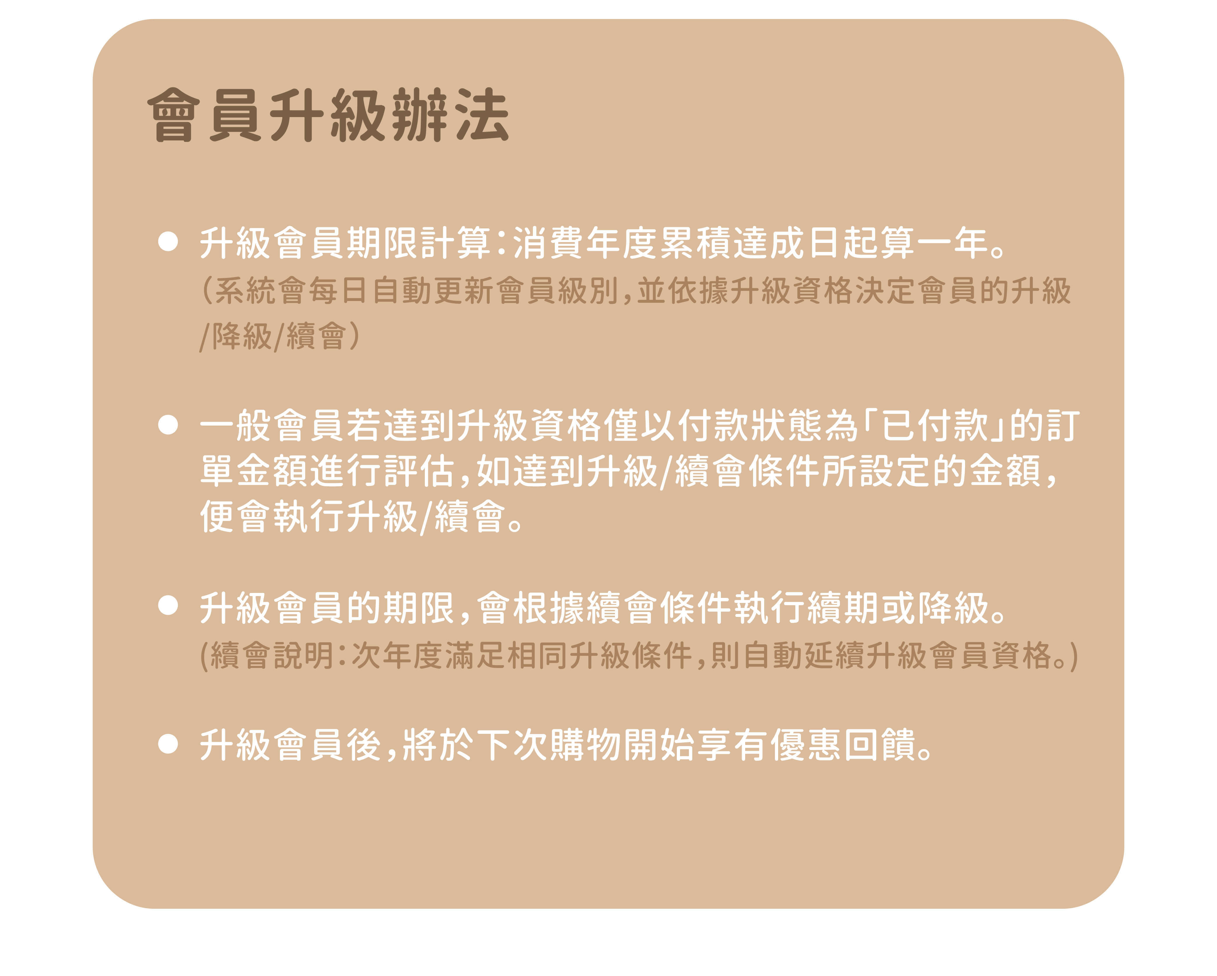 會員升級將於第一筆訂單完成後升級,下筆訂單即可享用會員優惠!