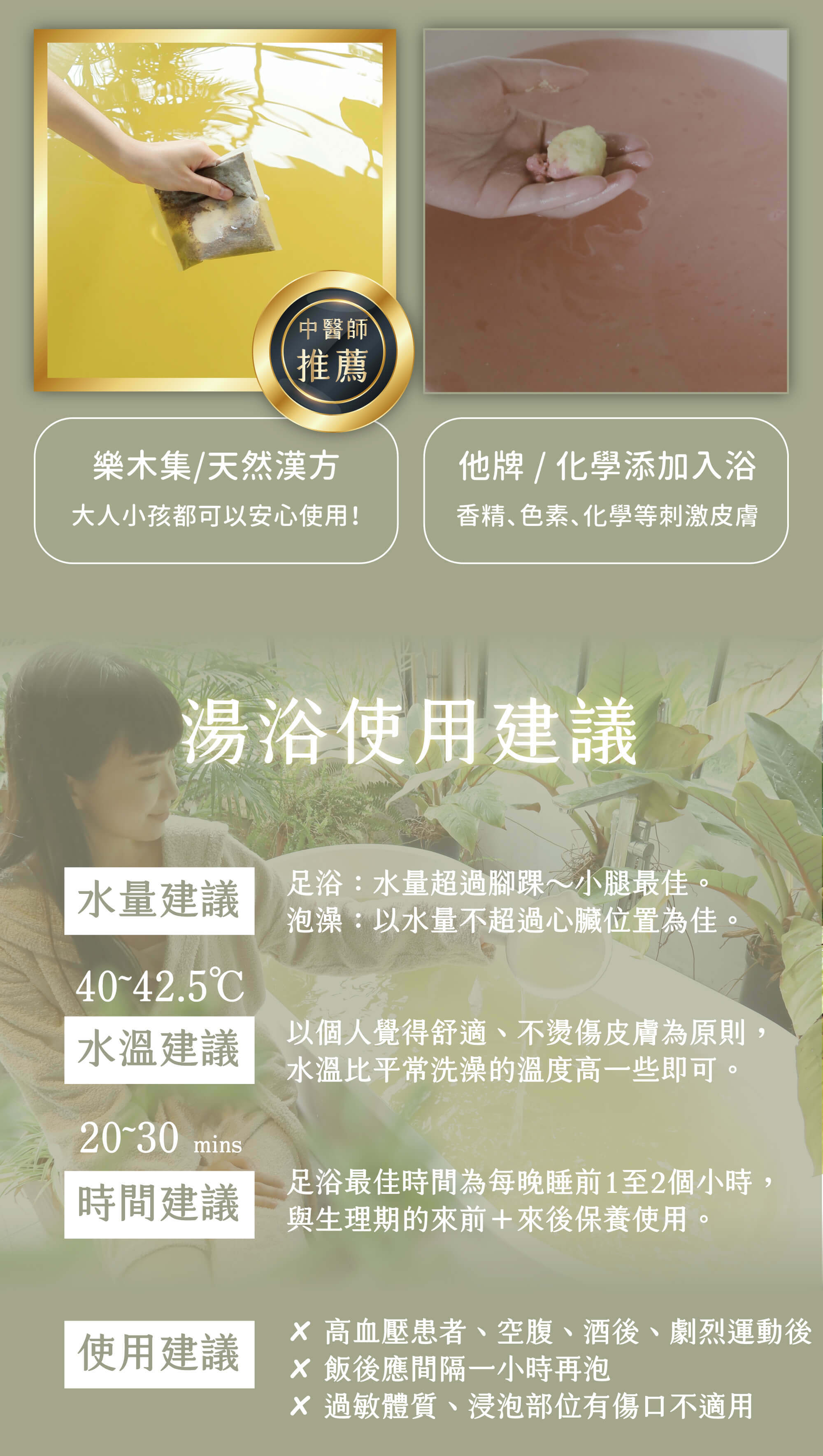 × 浸泡部位的肌膚本身有傷口或不適症況,使用前建議先詢問醫師的意見