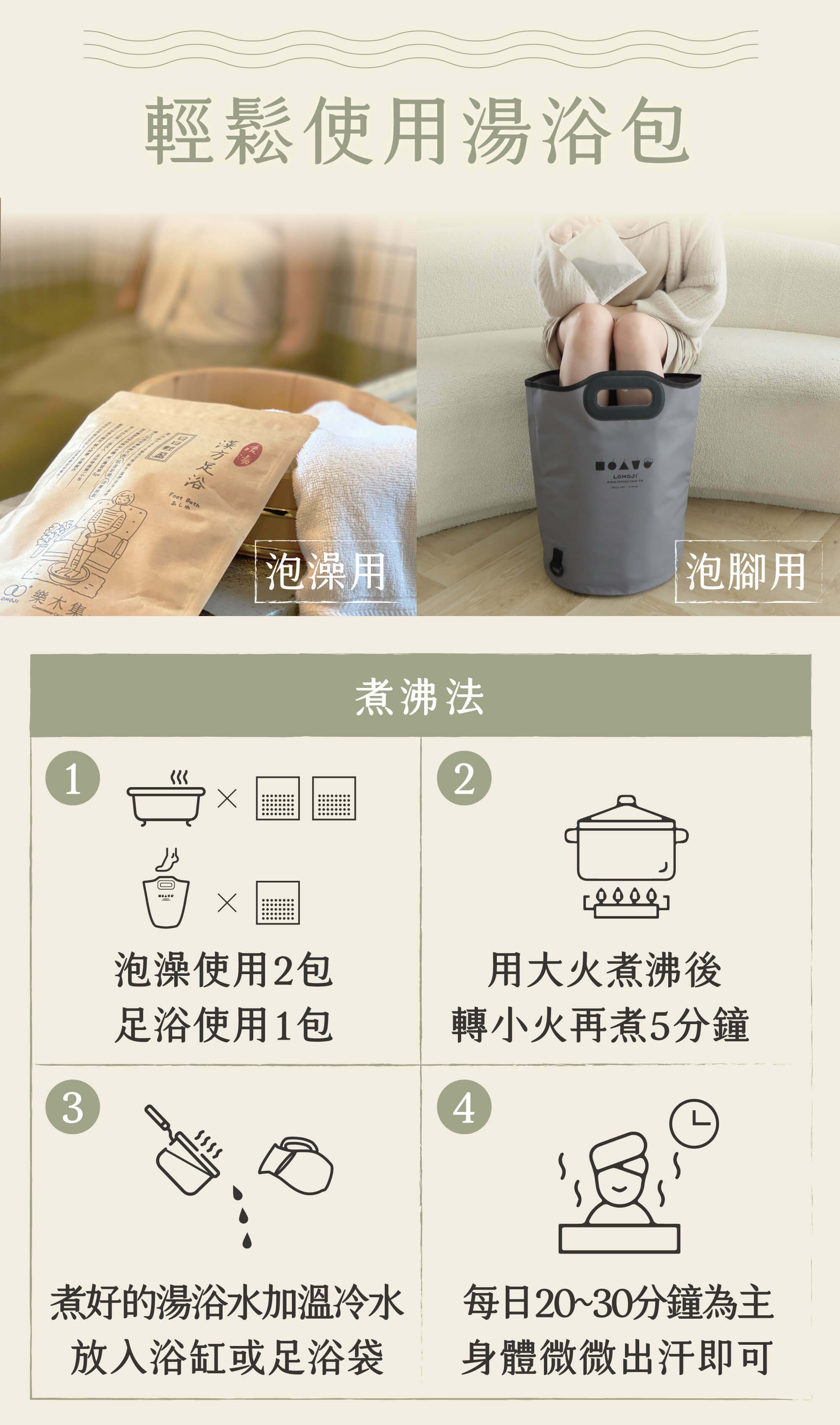 ‧ 泡澡、泡腳都ok(泡腳放1包,泡澡放2包)