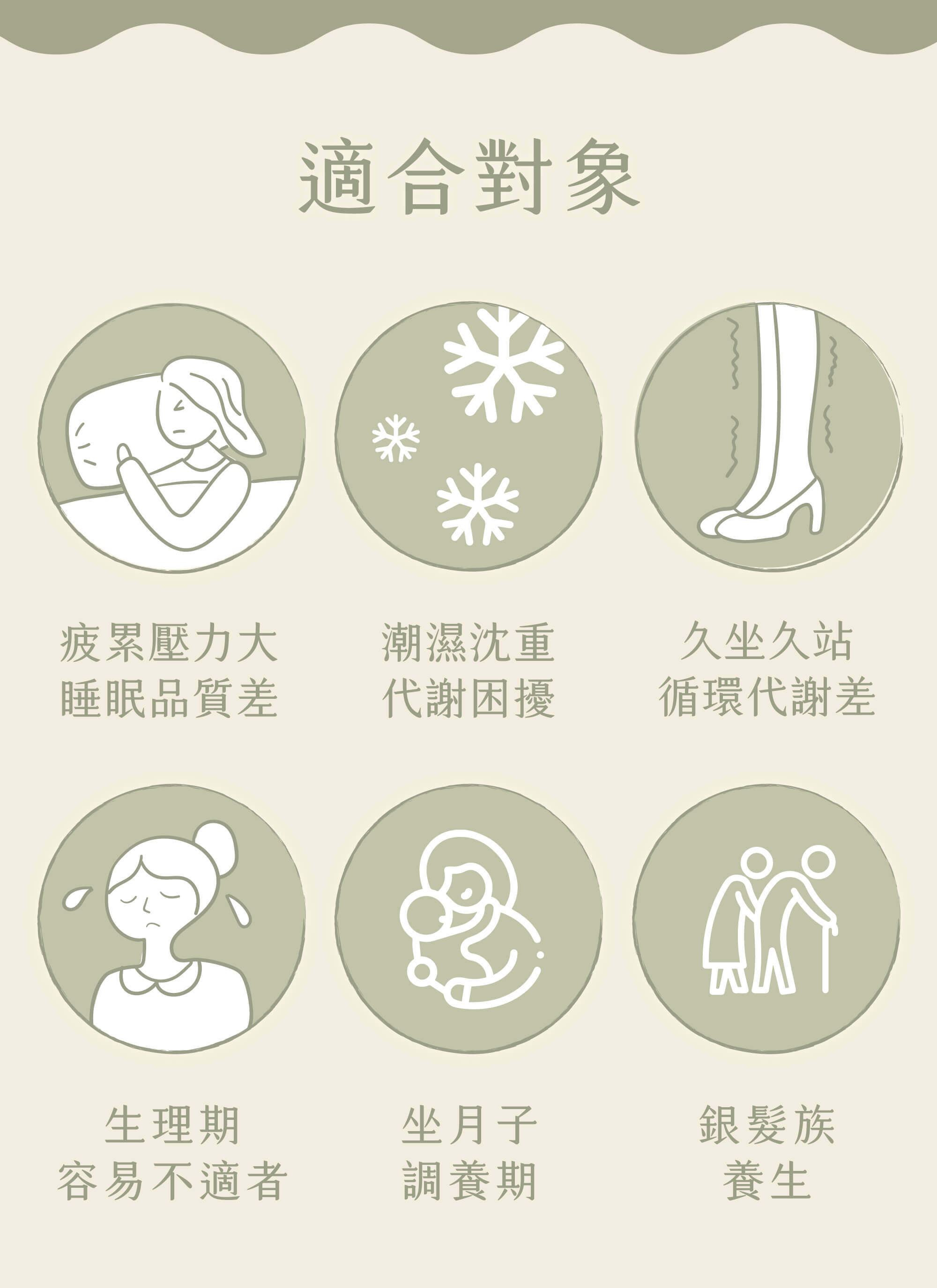 適用對象│ 忙碌緊繃、精神不濟、情緒壓力、睡眠品質不佳、不分使用年齡與膚況。溫和的草本成分友善膚質,三款皆添加艾草等穩定之漢材,『月月溫順』特別針對想生理期不適的你,添加其中益母、桂枝、澤蘭、當歸等漢材,是對女性很有益的漢材,女性把生理期顧好,讓每個月更舒適地度過,打造紅潤優雅的生活。