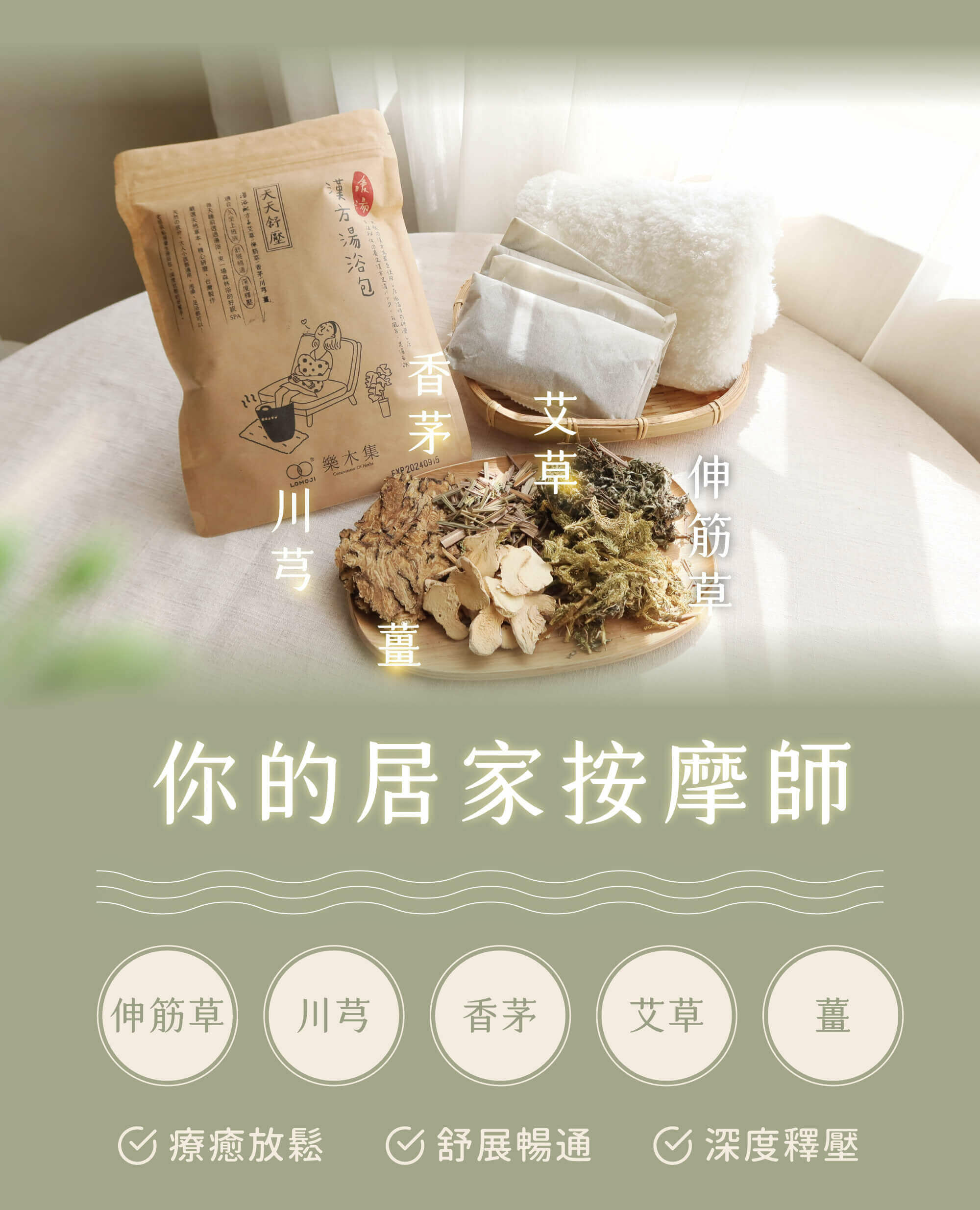 成 分│ 100%天然漢方(艾草、伸筋草、香茅、川芎、薑)低溫烘焙研磨製成