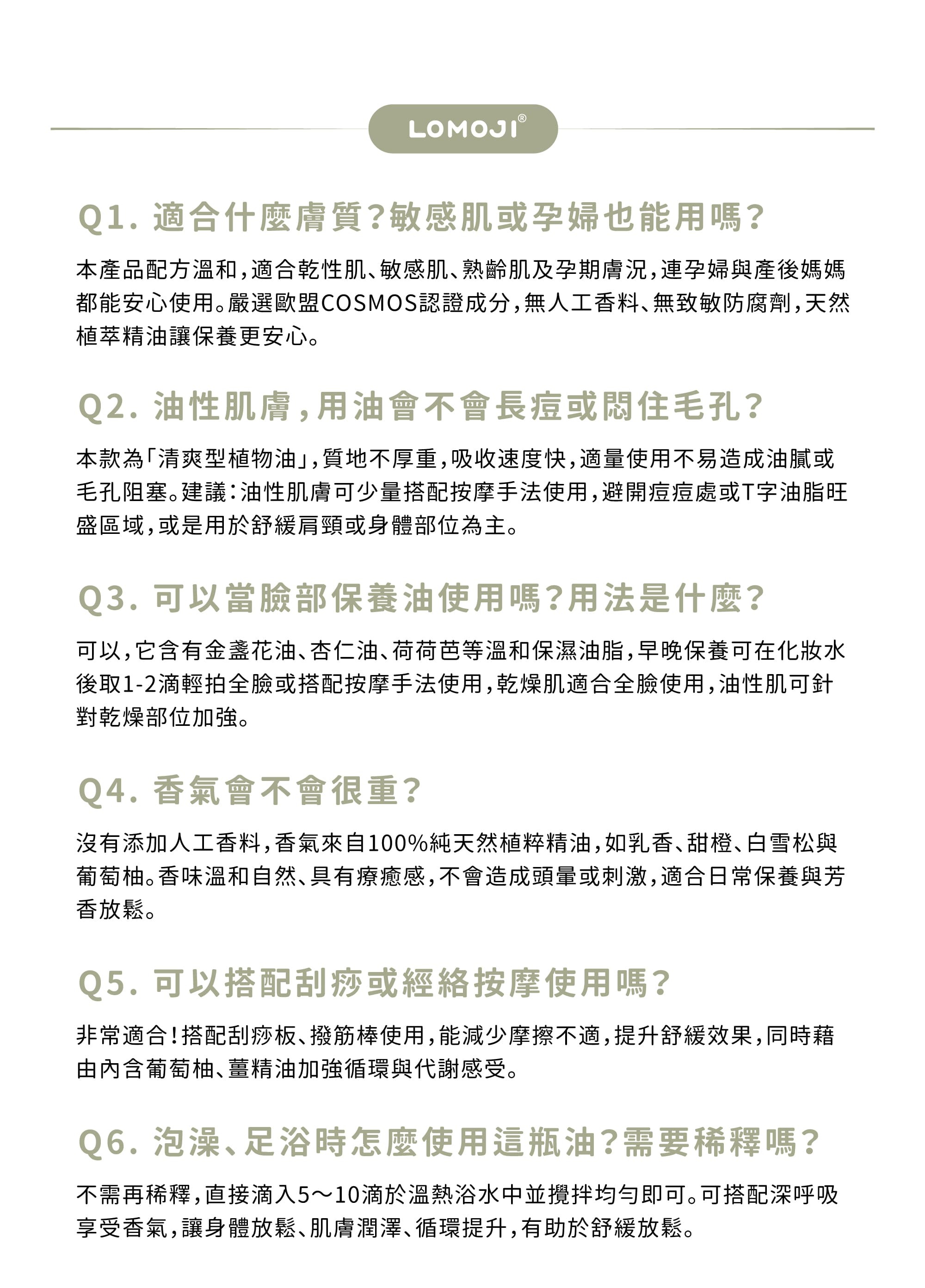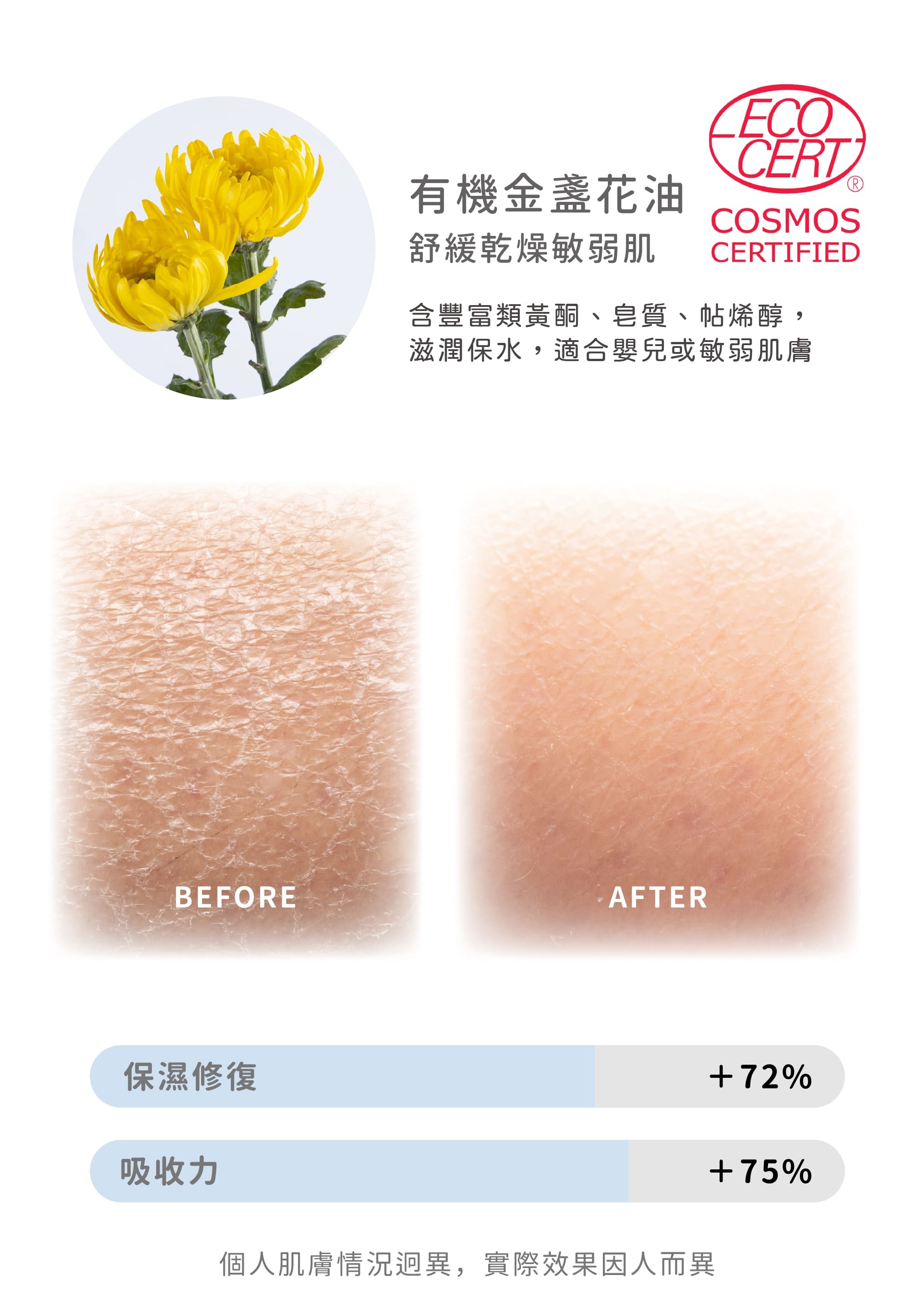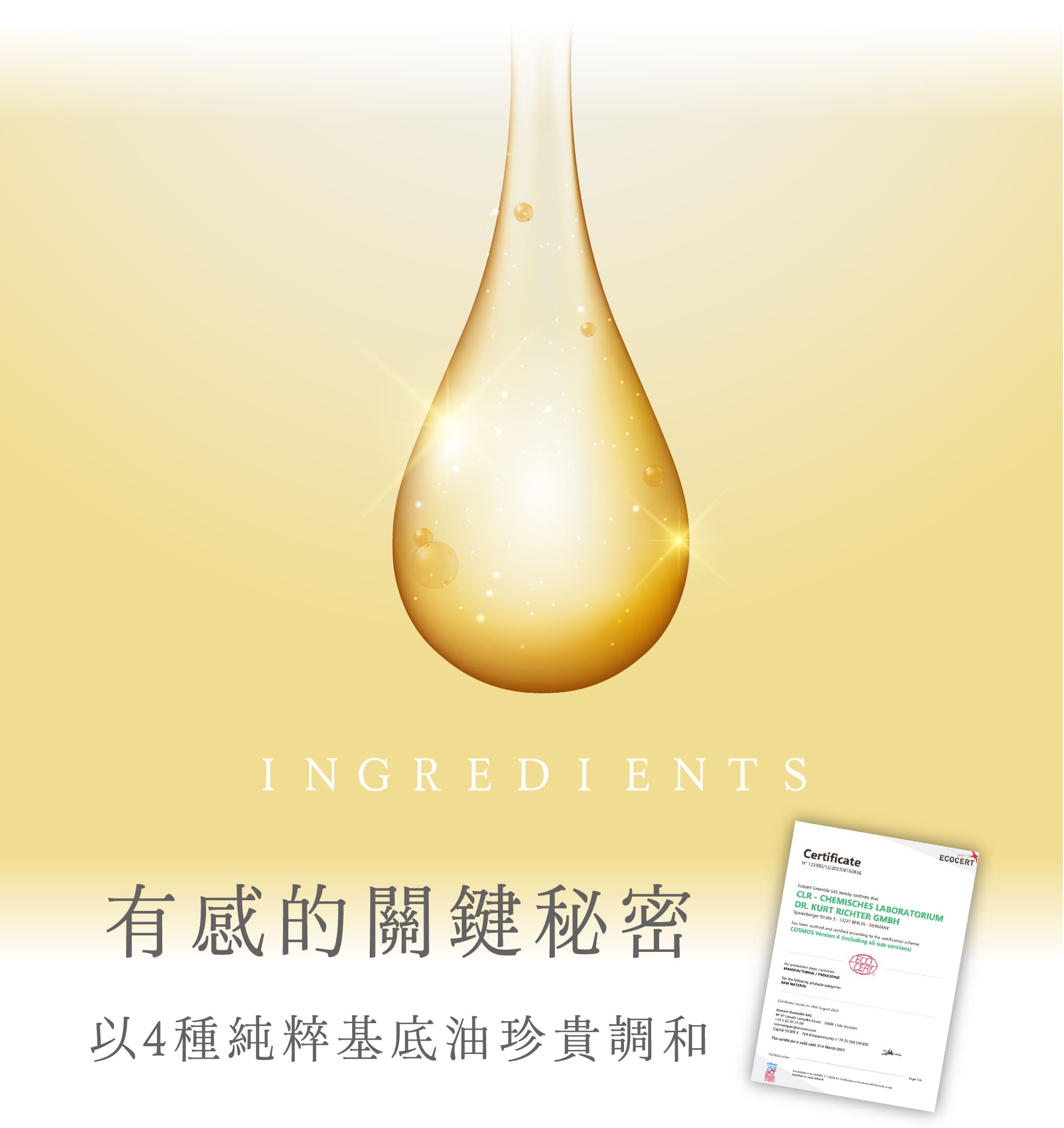 • 100%單純成份:杏仁油/酪梨油/荷荷芭油/金盞花油/天然精油