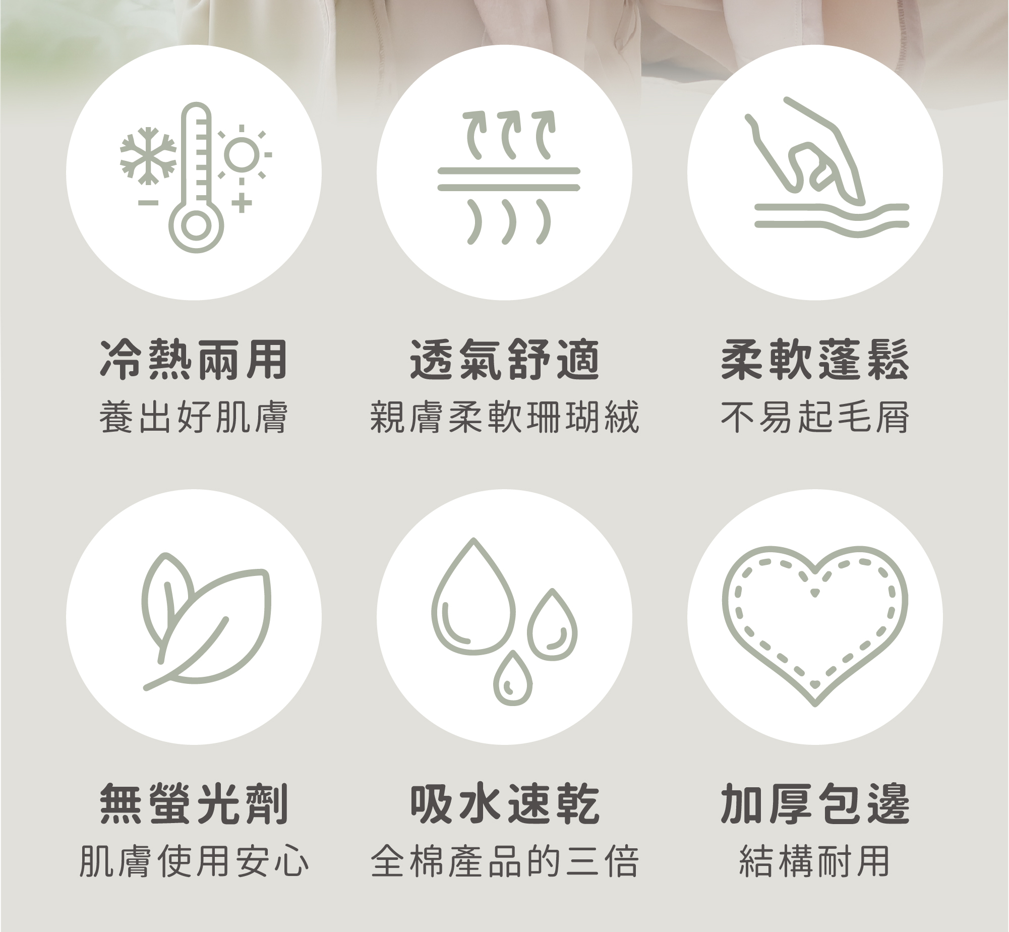 ▸ 珊瑚絨材質 / 柔軟蓬鬆 / 親膚透氣