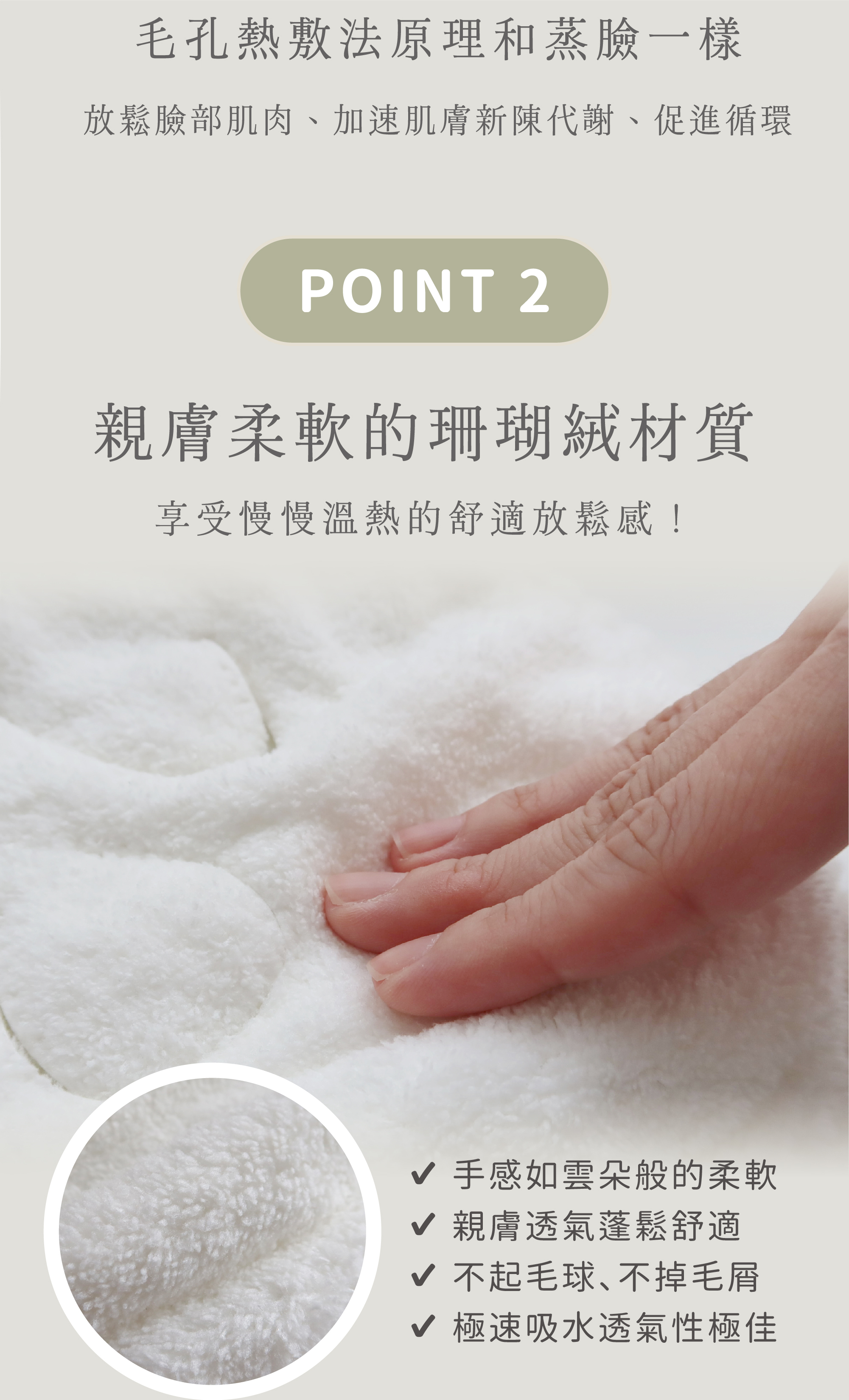 ▸ 38°C至40°C的水溫,敷5至10分鐘養出零毛孔美肌