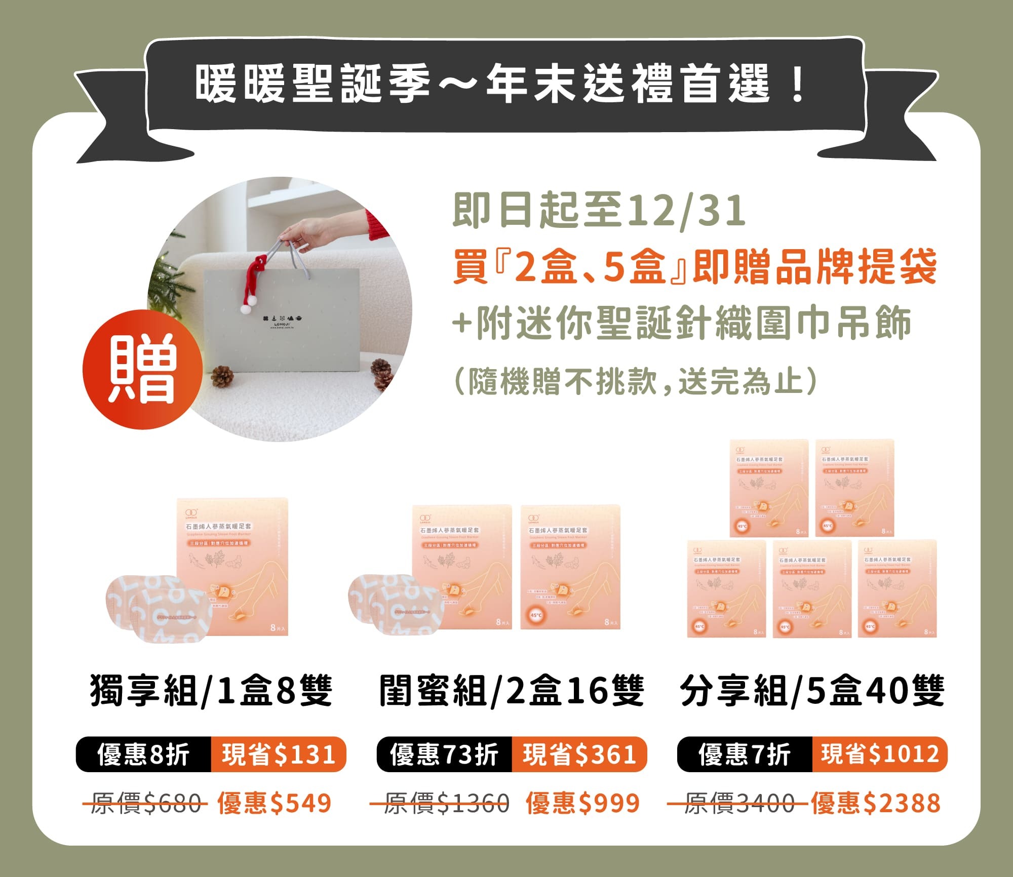全店,暖暖聖誕季|滿 $1,299 贈「石墨烯人蔘暖足套體驗組」