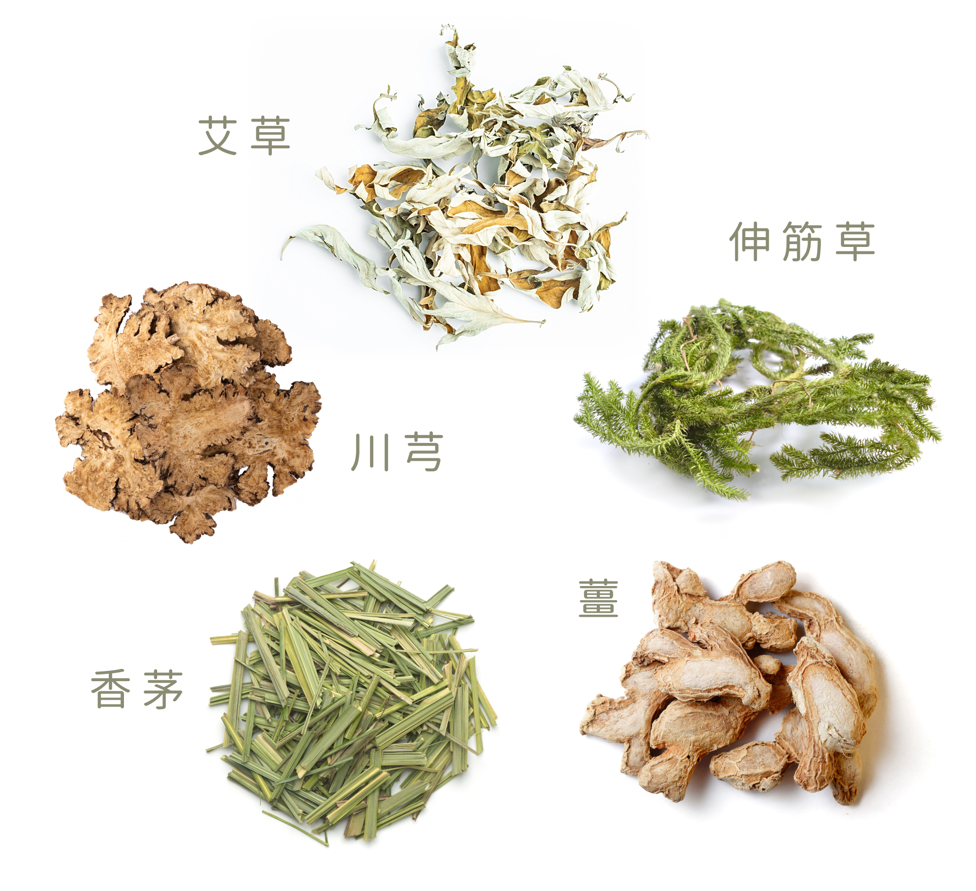 成 分│ 100%天然漢方(艾草、伸筋草、香茅、川芎、薑)低溫烘焙研磨製成