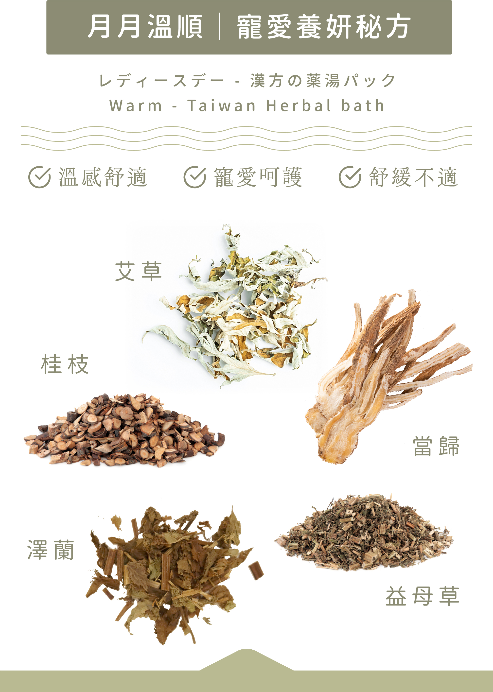 成 分│ 100%天然漢方(益母草、桂枝、艾草、澤蘭、當歸)低溫烘焙研磨製成