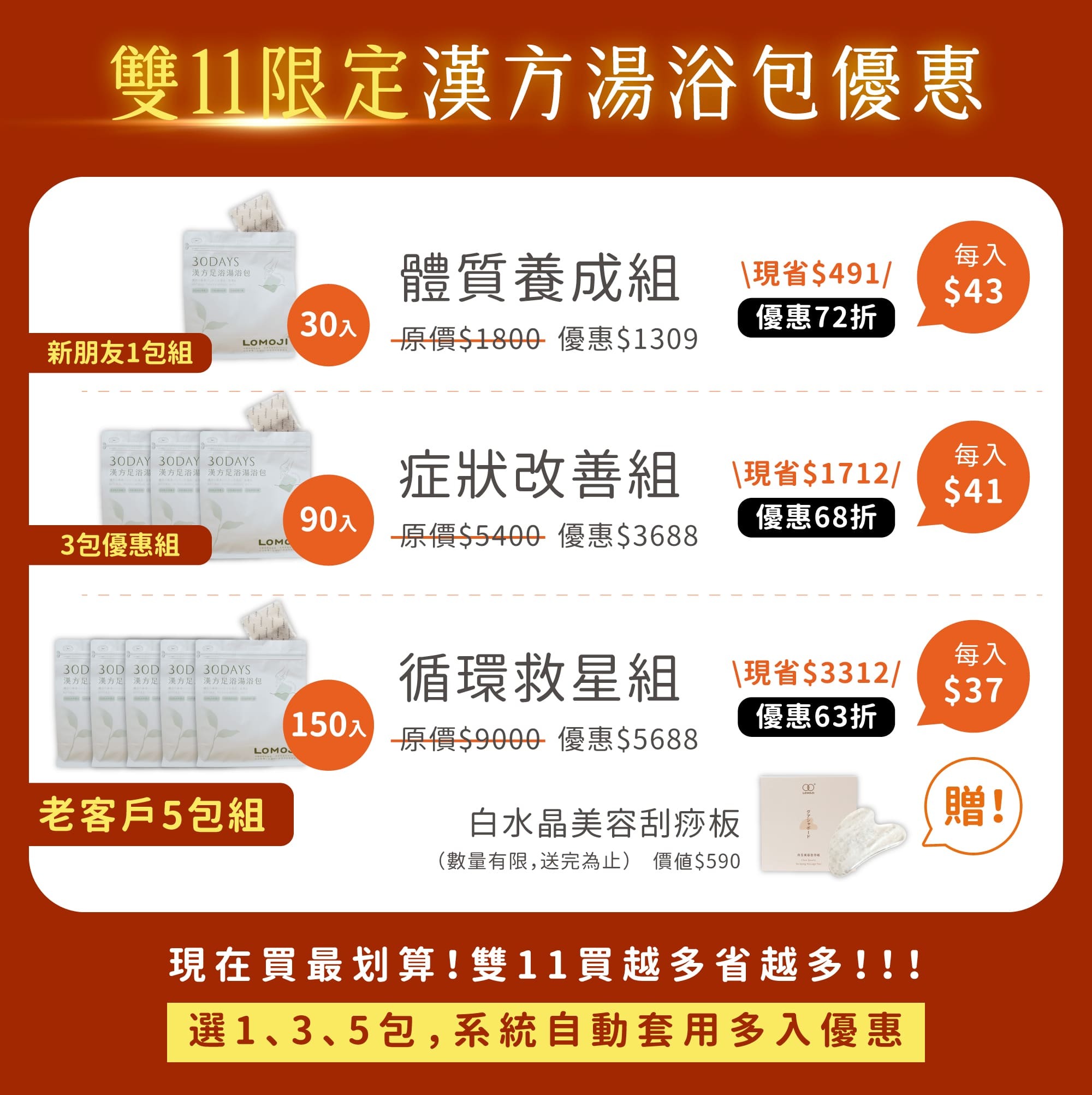 指定商品,🎊雙11最優惠|任選漢方湯浴澎湃包,3包(90入)$3688、5包(150入)只要$5688