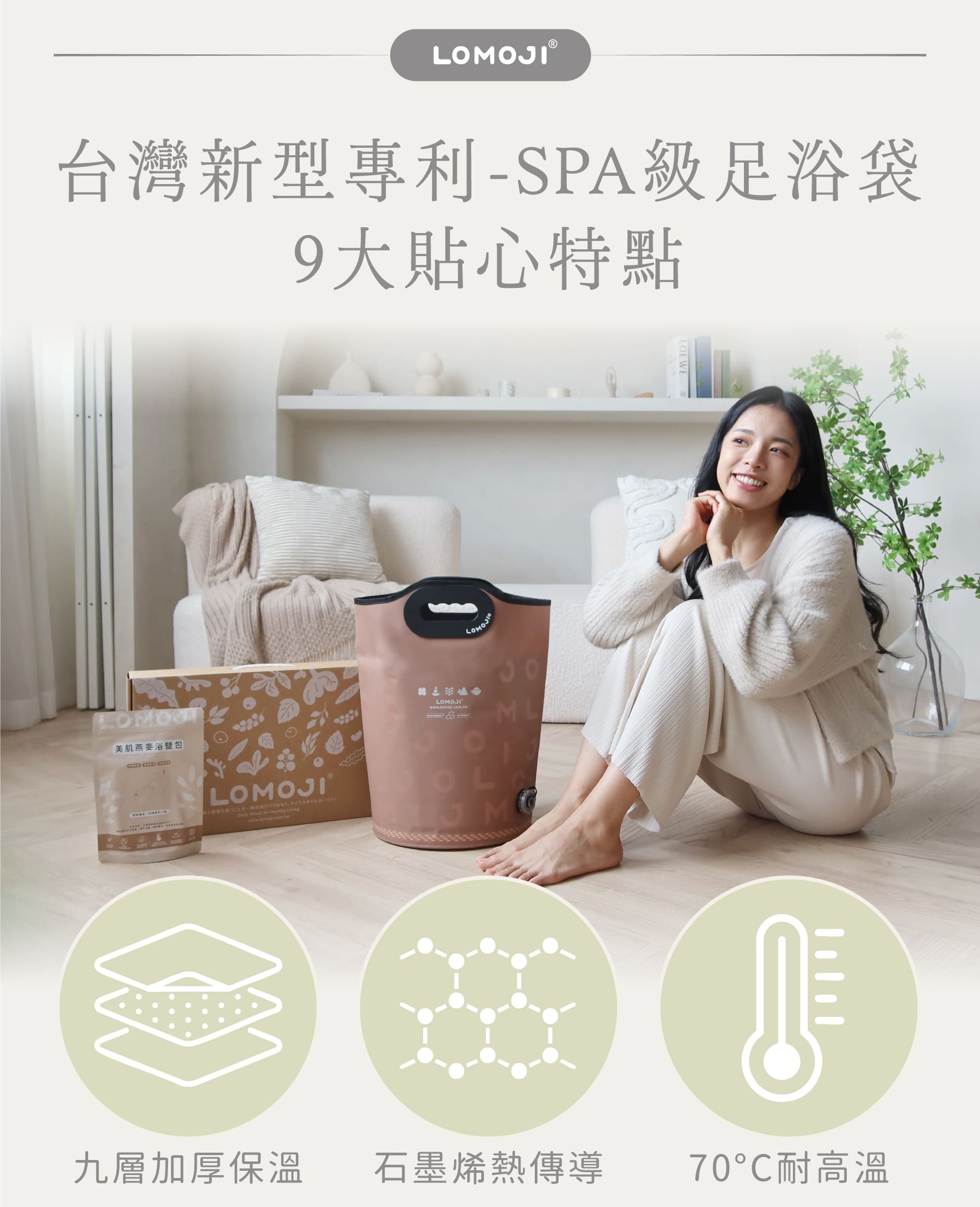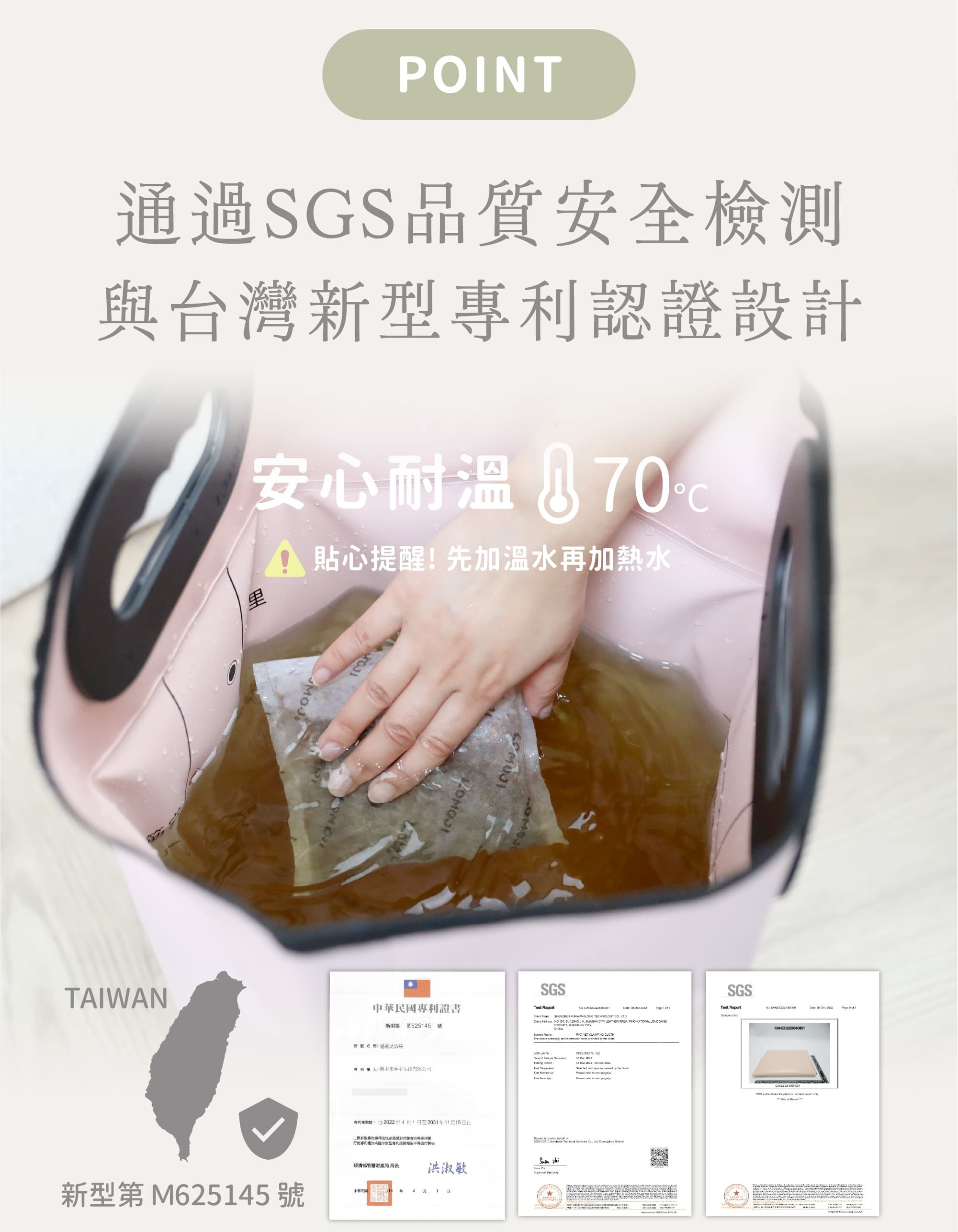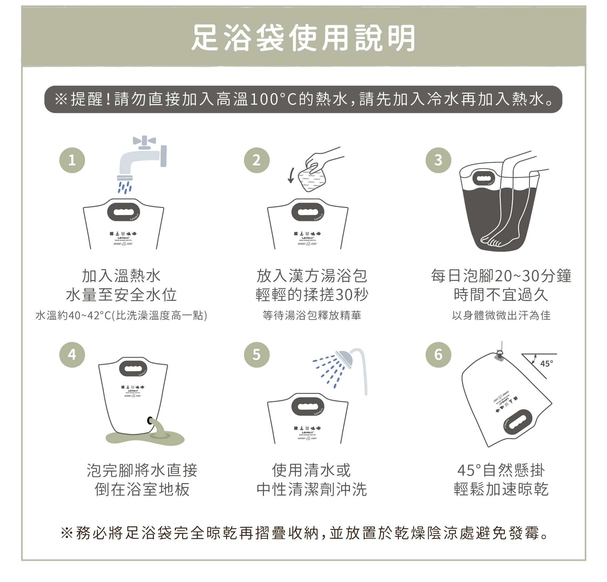 使用說明|足浴袋耐熱度為70度,請安全使用,小心燙傷! (切勿直接加入滾燙熱水於足浴袋內)