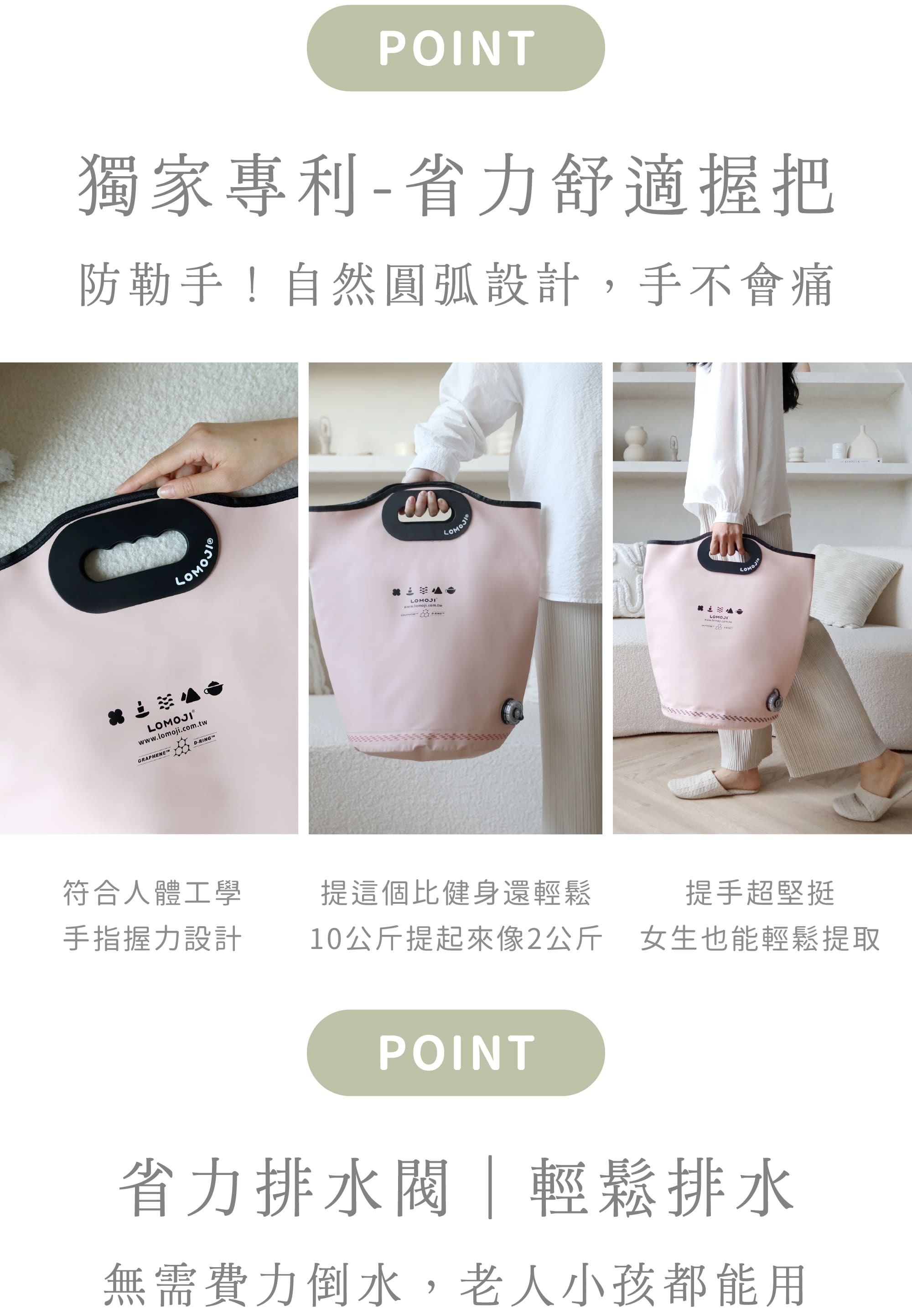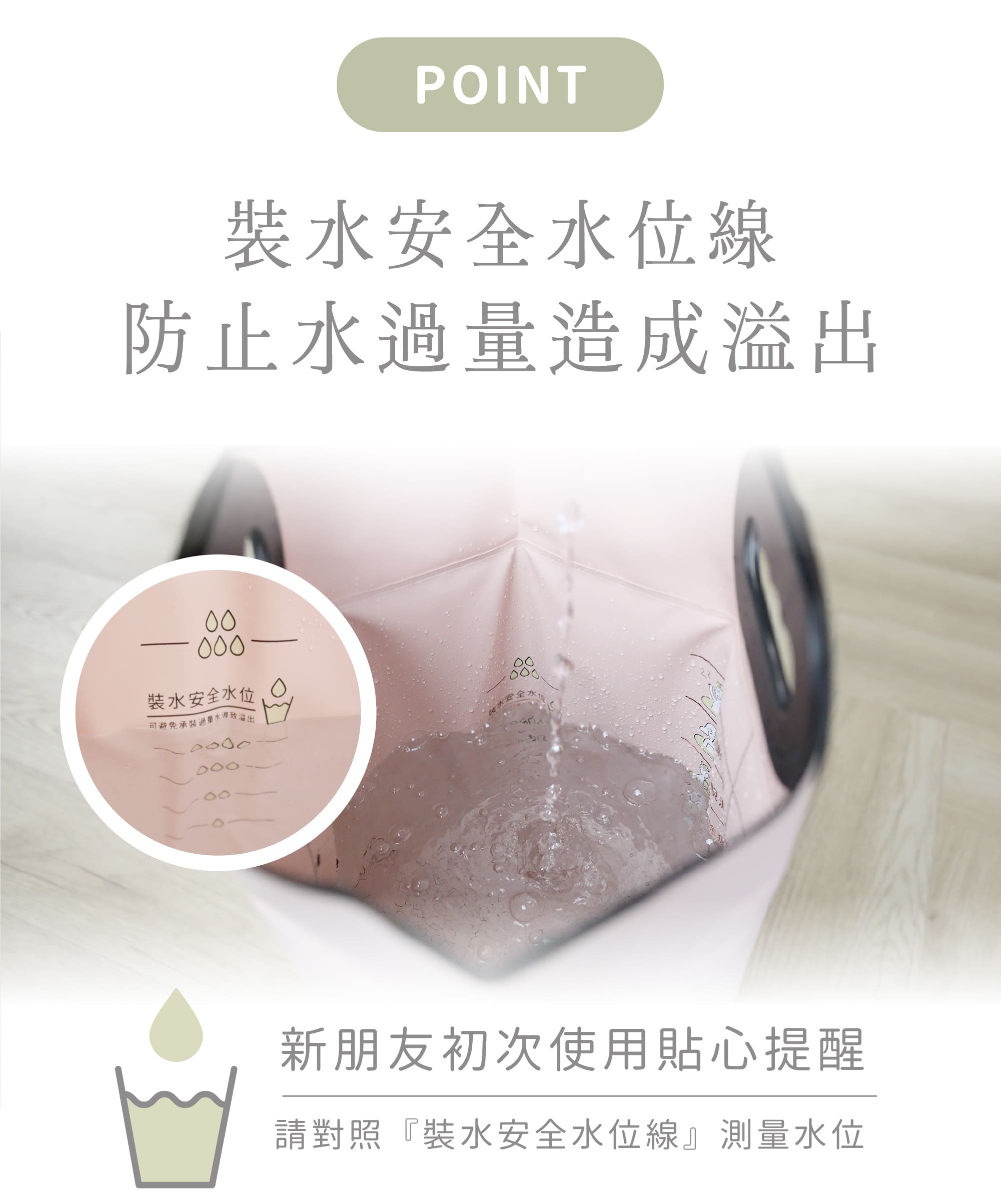 ∨ 人體工學舒適提手,輕鬆裝水倒水。
