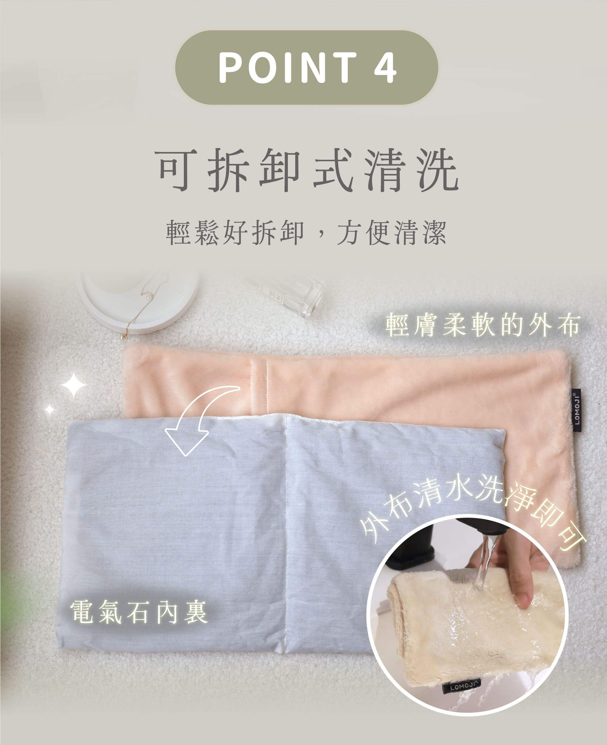 ▸ 電氣石材質,溫和釋放能量深層暖膚