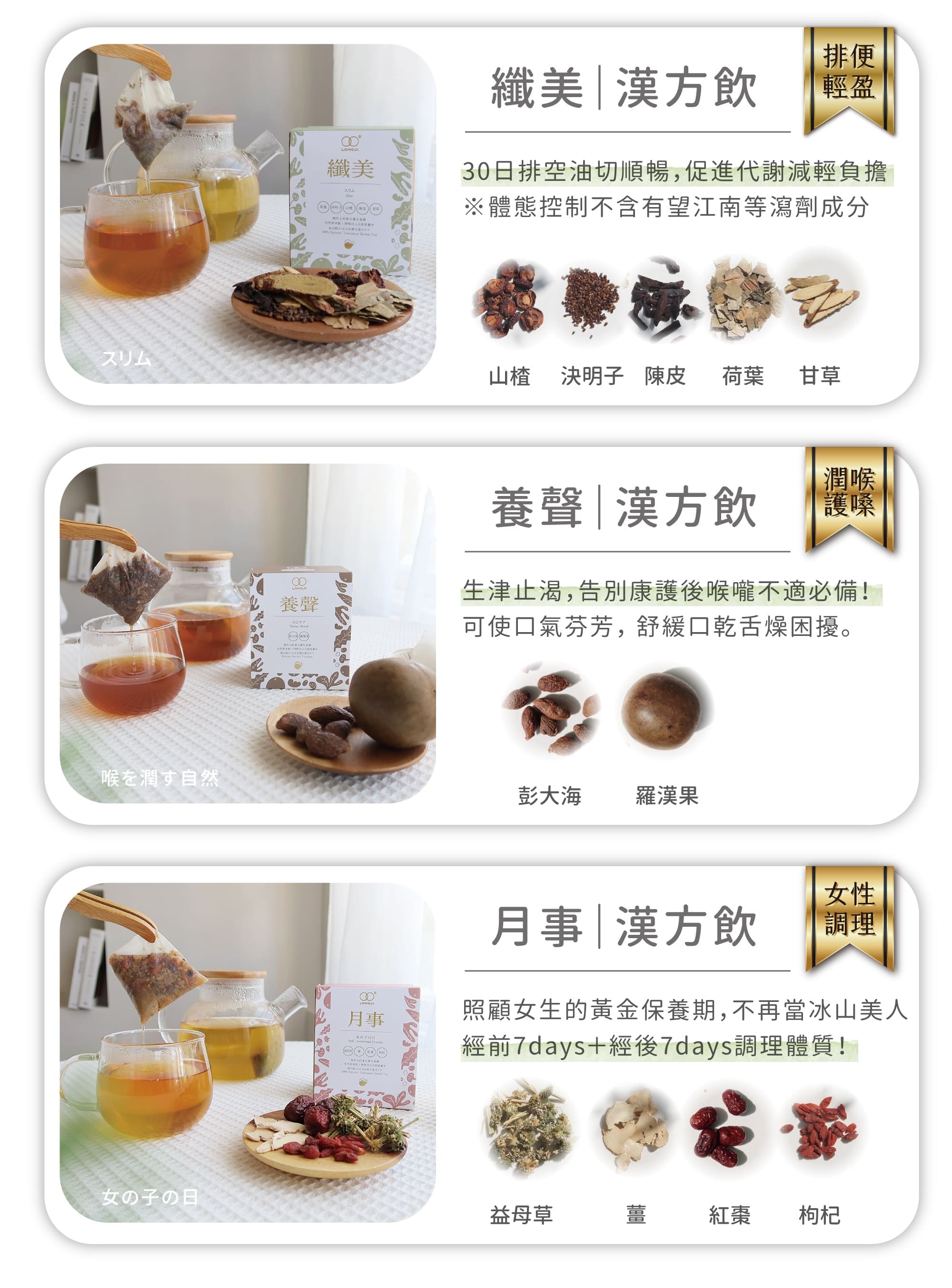 4. 本產品以天然漢方,飲用過程中如感到身體不適,請立即暫停使用。