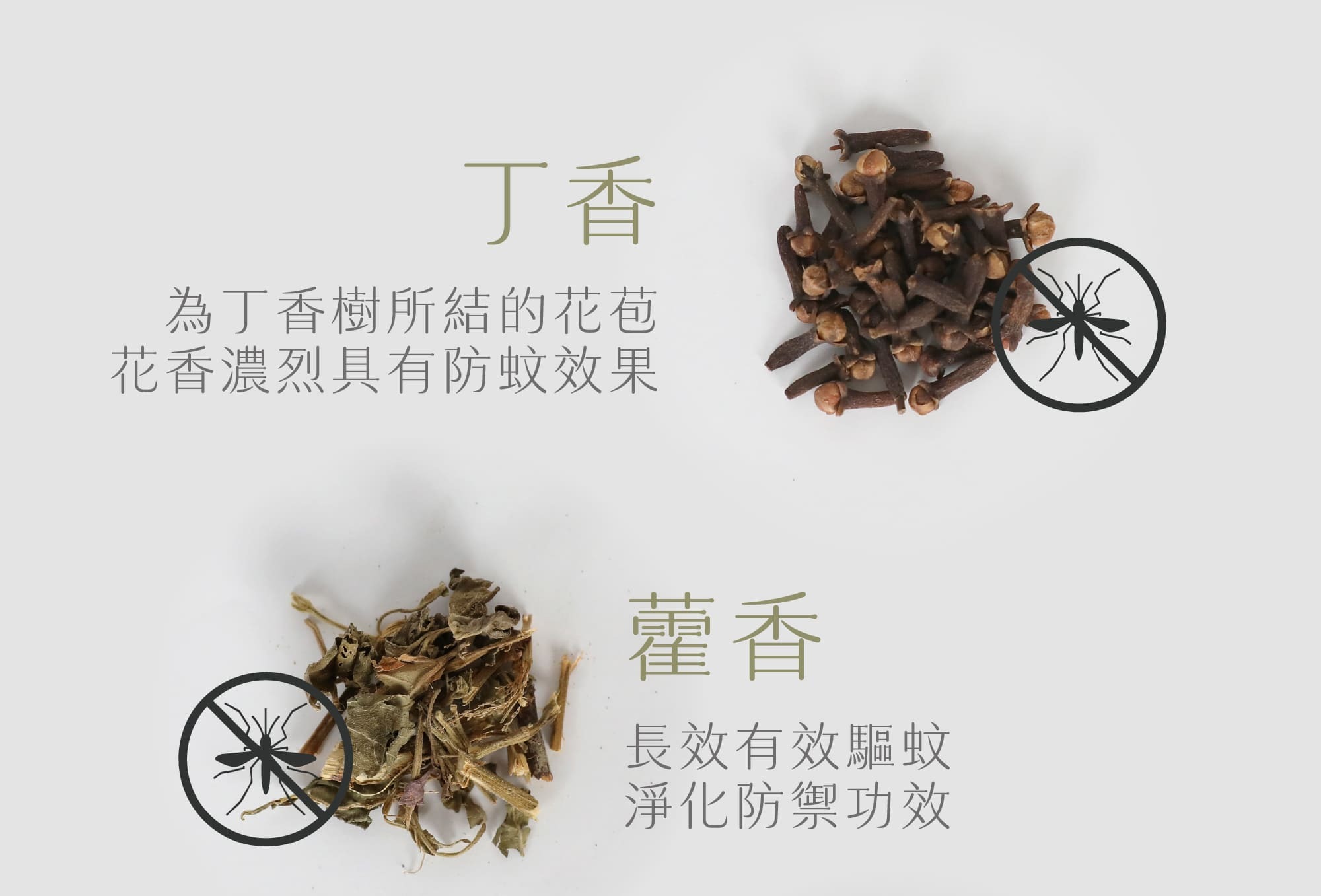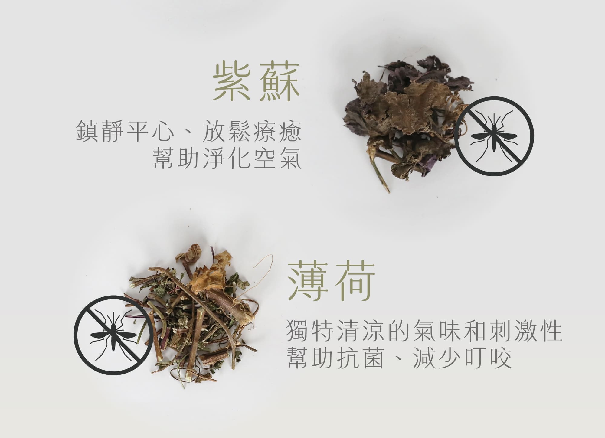 ‧ 菖浦、香茅、霍香、紫蘇、薄荷、艾草、丁香