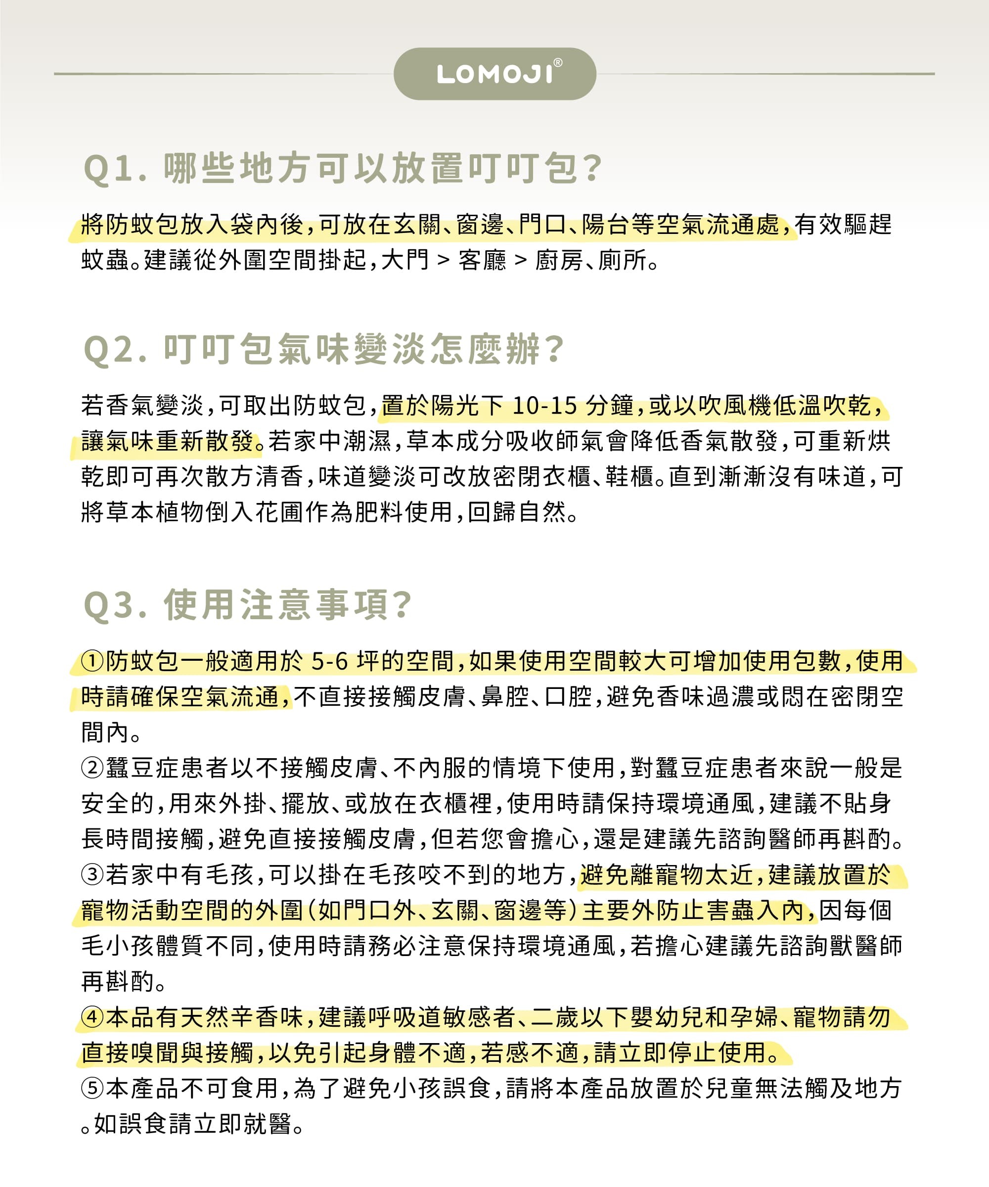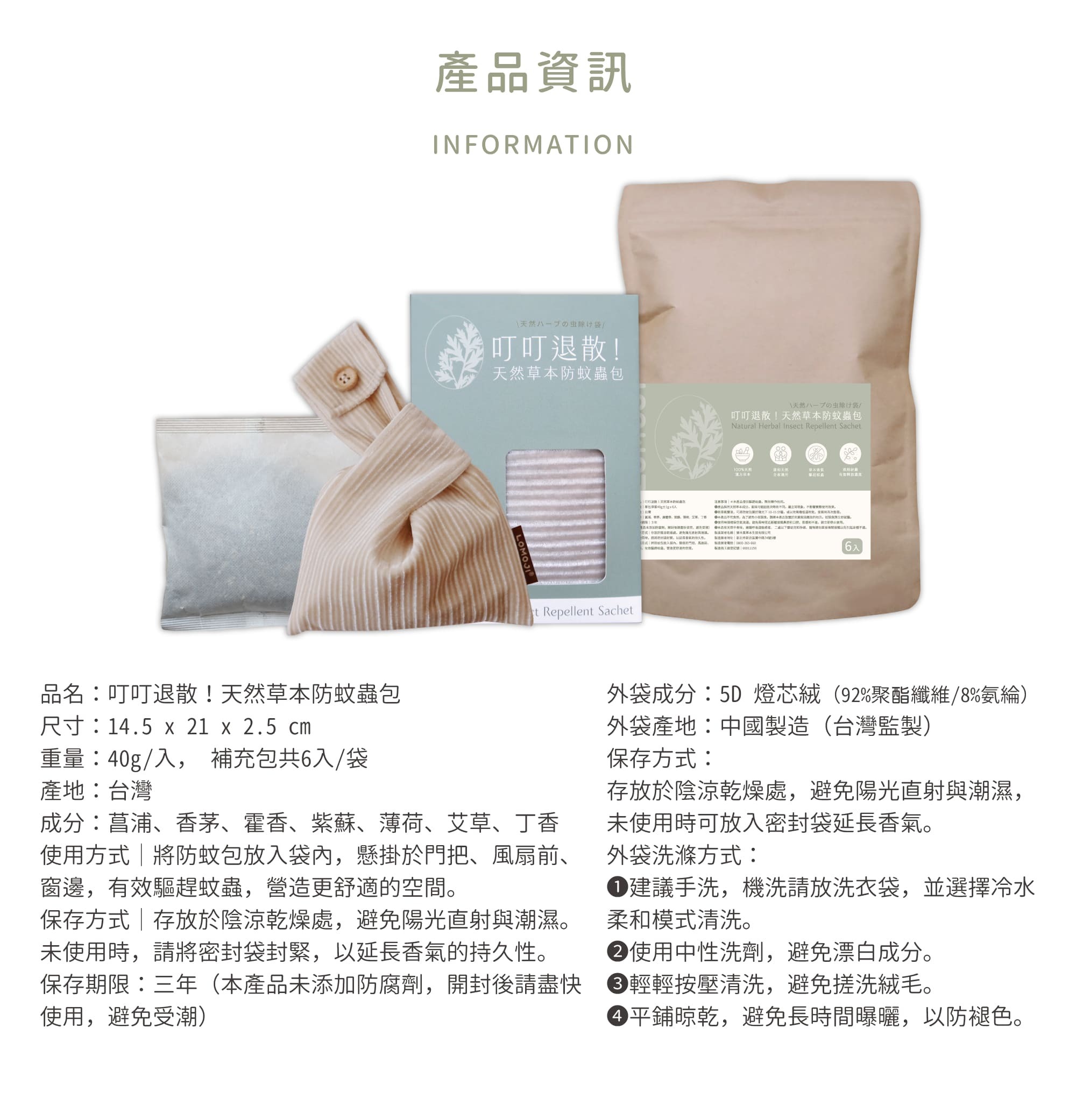 ‧ 藥材均經細緻研磨,氣味突出,驅蚊防蟲效果極佳