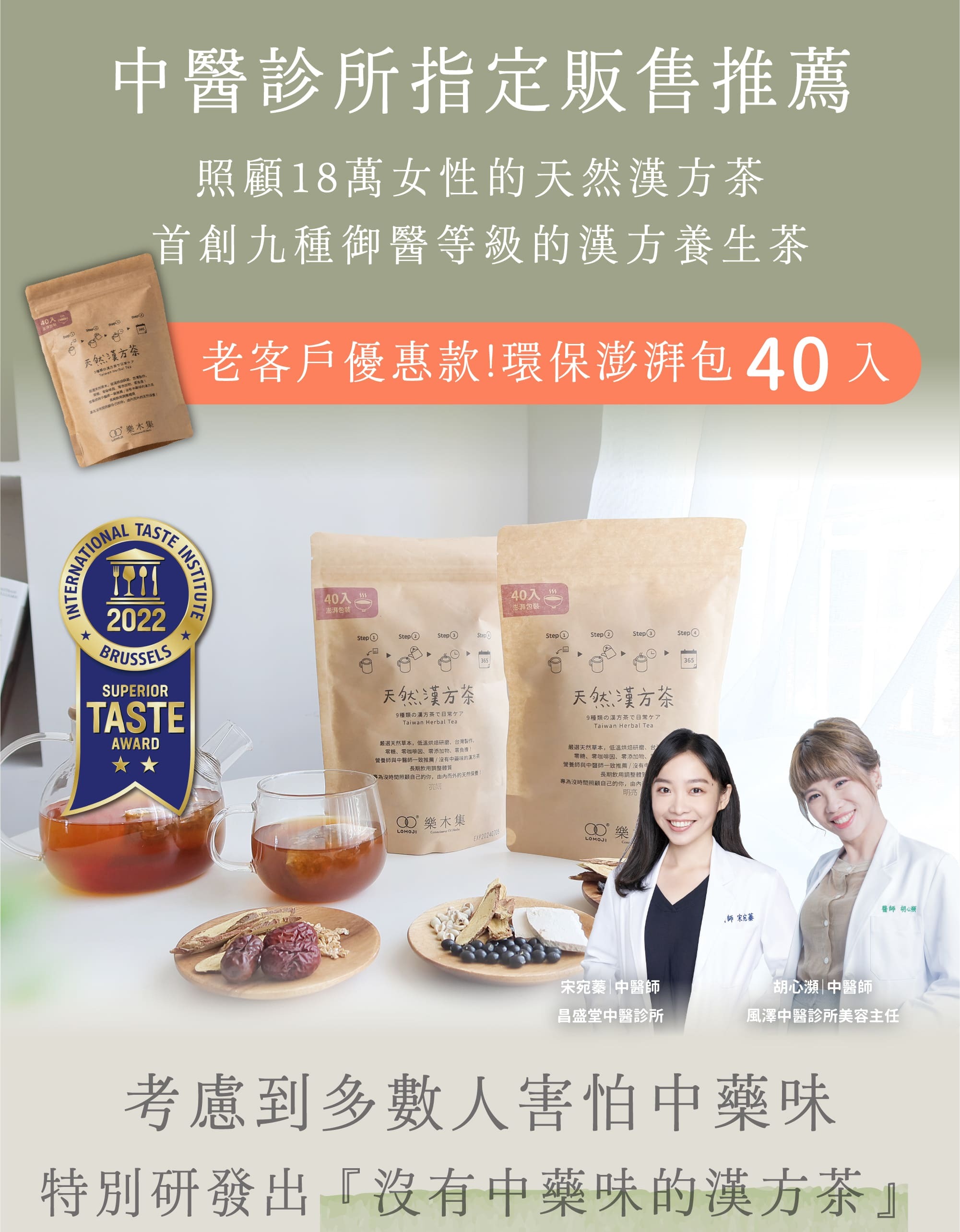 樂木集隱⾝在台北廈⾨街中藥行,傳承老祖宗的漢方智慧,在老祖宗的概念裡食物和養生是相輔相成的,「食療」是日常透過茶飲、膳食來作為平日保健養生的一種方式,但漢方茶他並不是藥,沒辦法喝一包就有成效,必須『一天』、『一點』地慢慢累積,一個養生的好習慣經過時間的複利加成,身體的改變一定會有感,100%天然漢方食材,純天然、無咖啡因、無糖,經60°C低溫烘焙研磨製成茶包,不使用任何化學方式處理,將漢方精華鎖進漢材中,免費時熬煮,五分鐘沖泡完成,每包茶包可回沖2~3次,一天兩包輕鬆補足一天喝水量,被網友評為『沒有中藥味的漢方茶』好喝到榮獲食品界米其林『頂級美味獎章,樂木集為中醫師、營養師、藥師、物理治療師一致認同,日本五星渡假酒店指定用漢方品牌,共有九款主題:極輕濕、助眠、纖美、月事、女神、亮妍、明亮、養聲、精神!