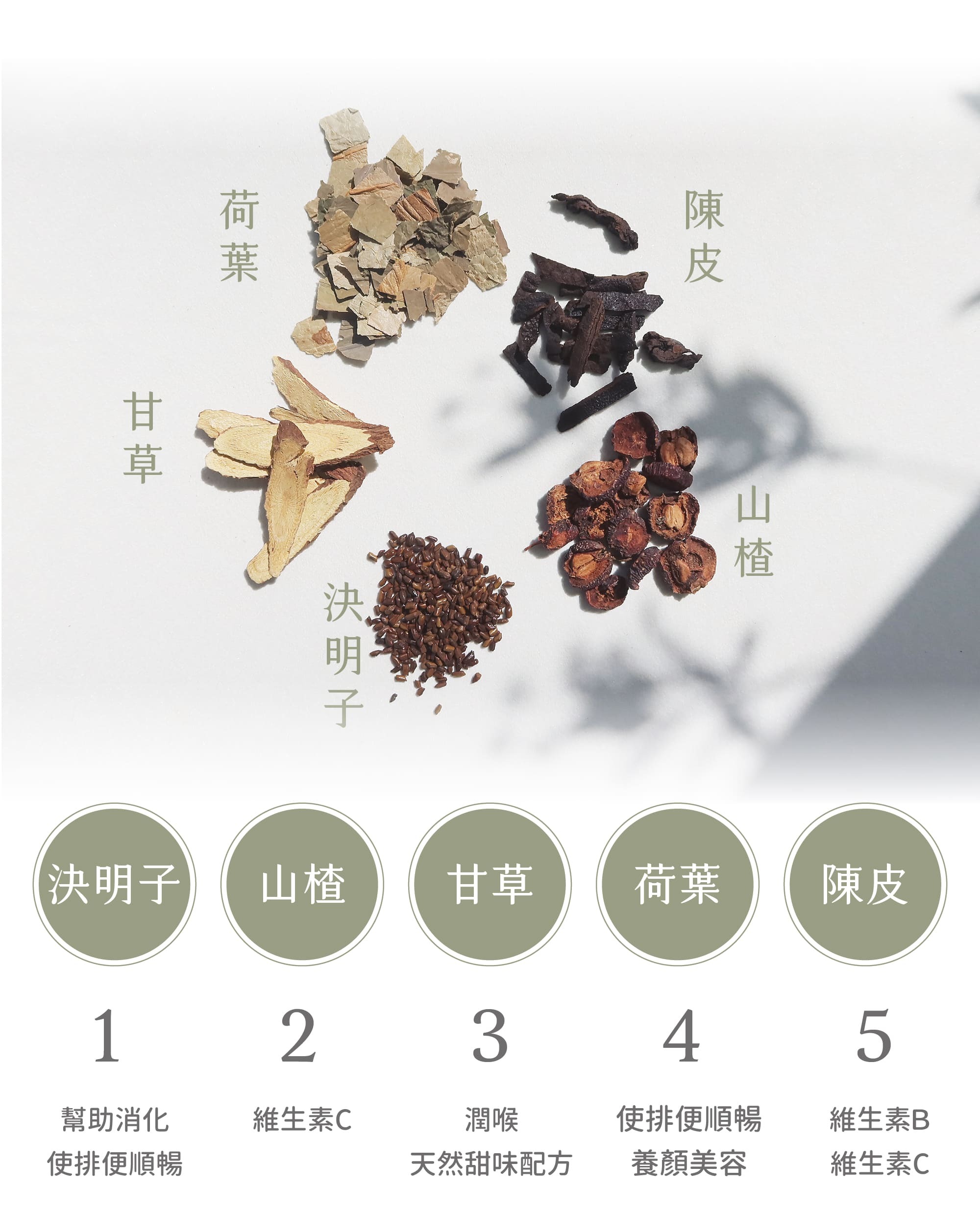 成 分│ 100%天然漢方(荷葉、山楂、陳皮、決明子、甘草)低溫烘焙研磨製成