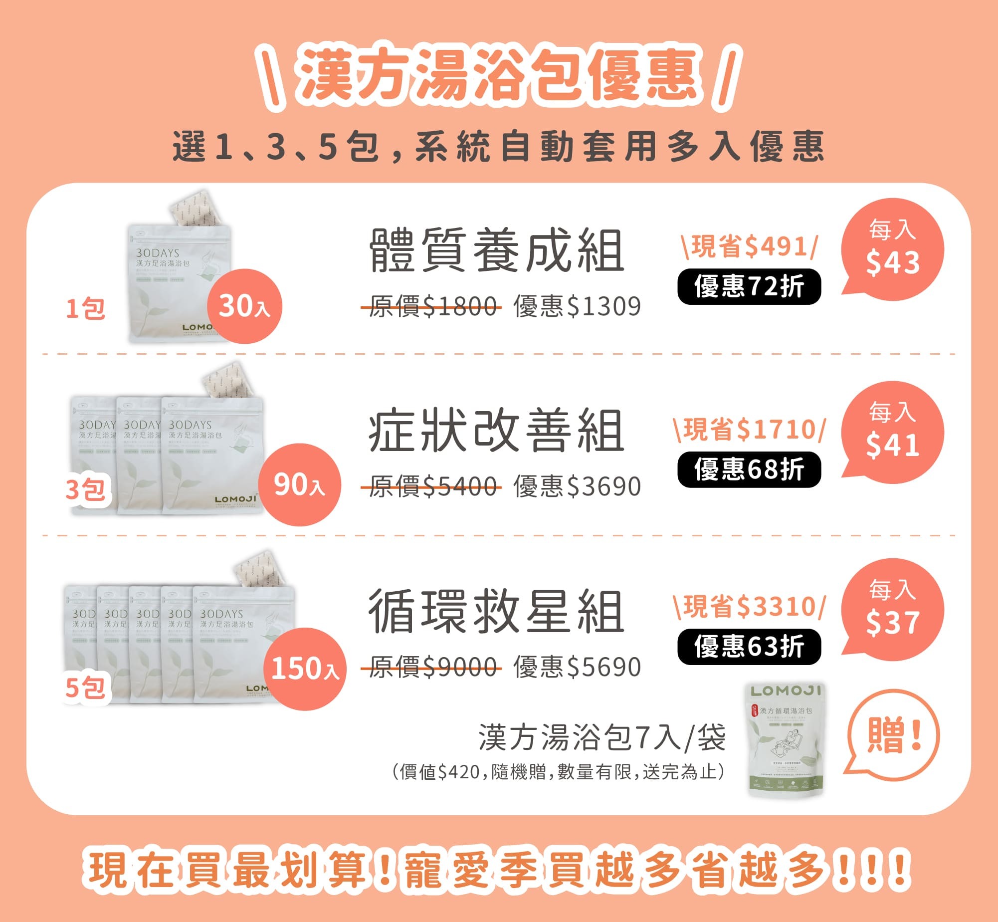指定商品,🩵寵愛專屬|任選漢方湯浴澎湃包,3包(90入)$3690、5包(150入)只要$5690