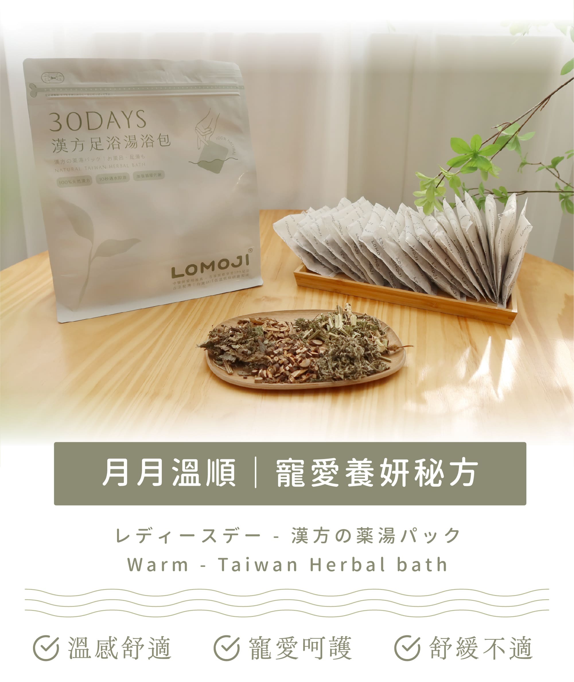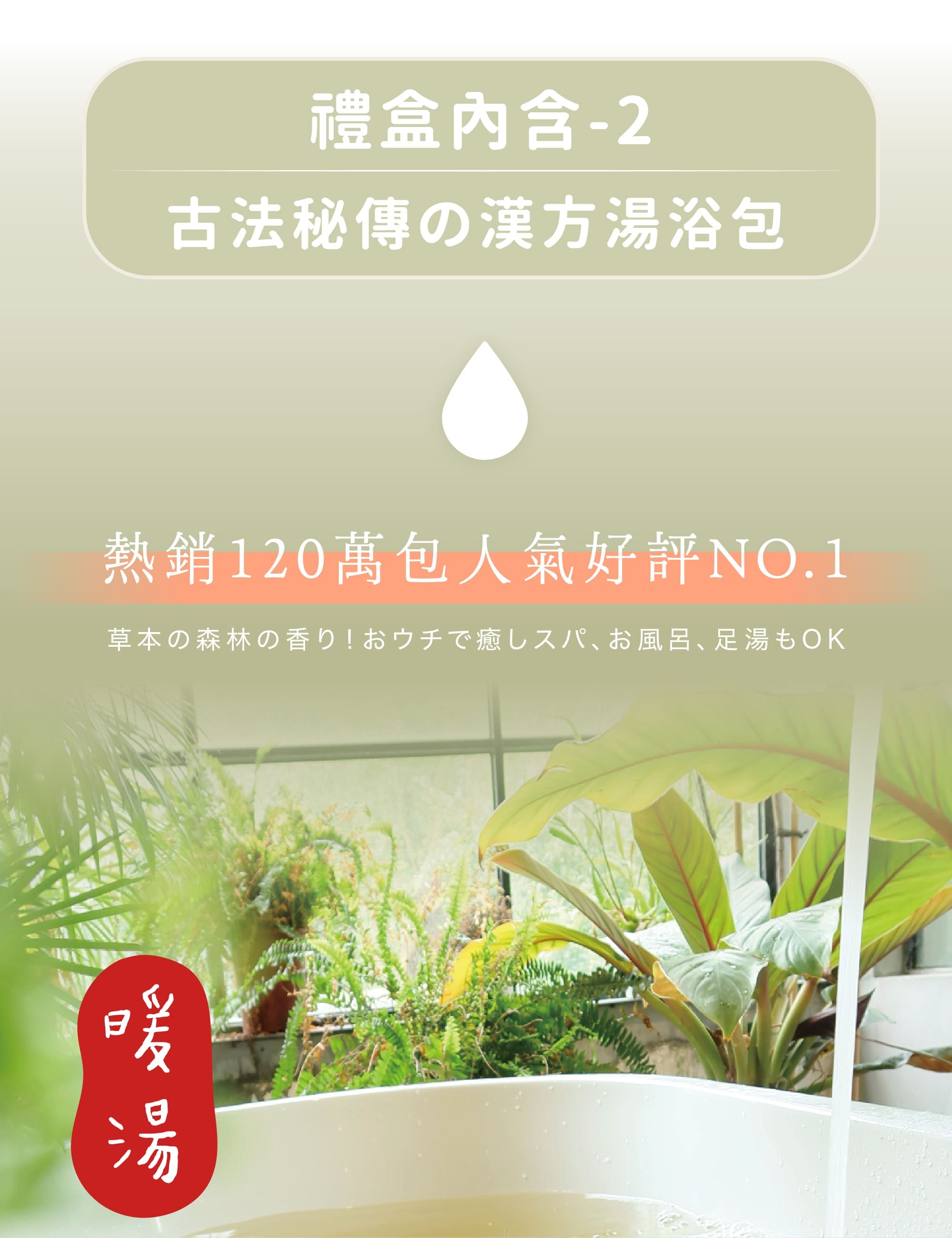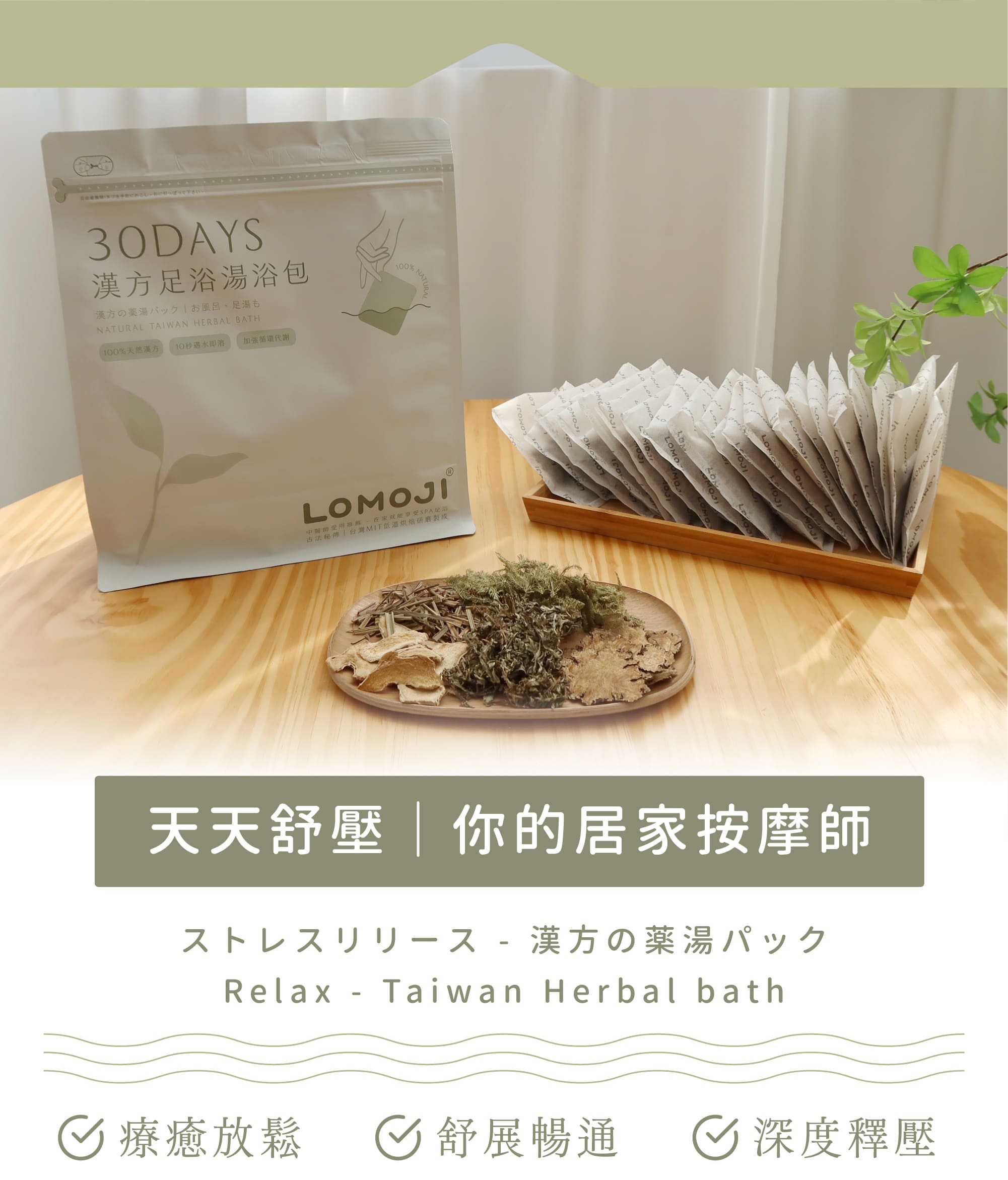 12種天然草本,滿足不同泡澡需求,使用時散發天然草本香氣,促進肌膚新陳代謝、輕盈舒暢、深層放鬆