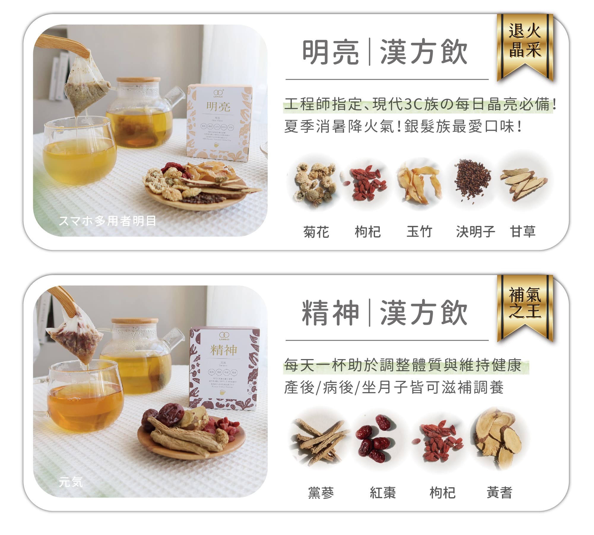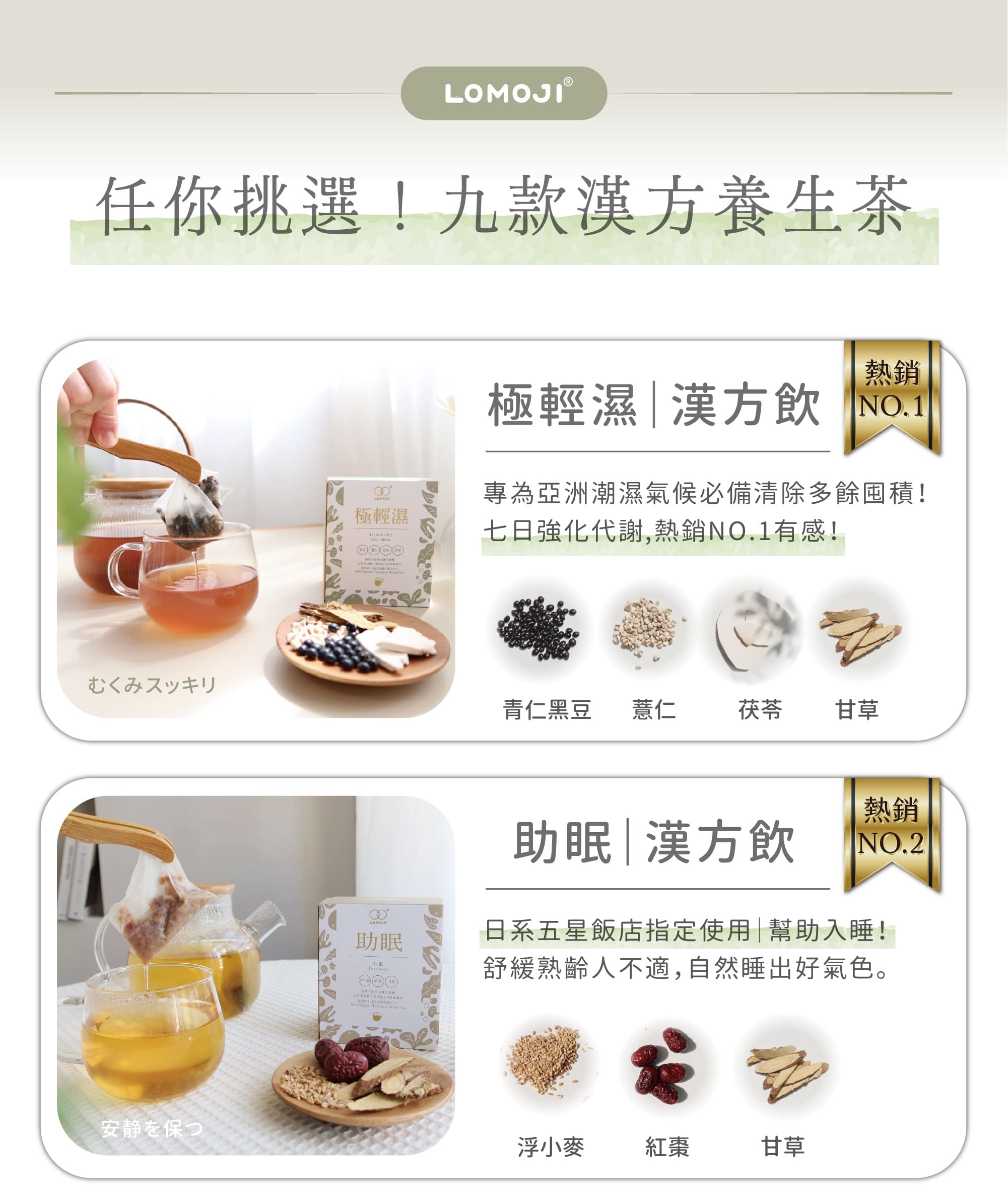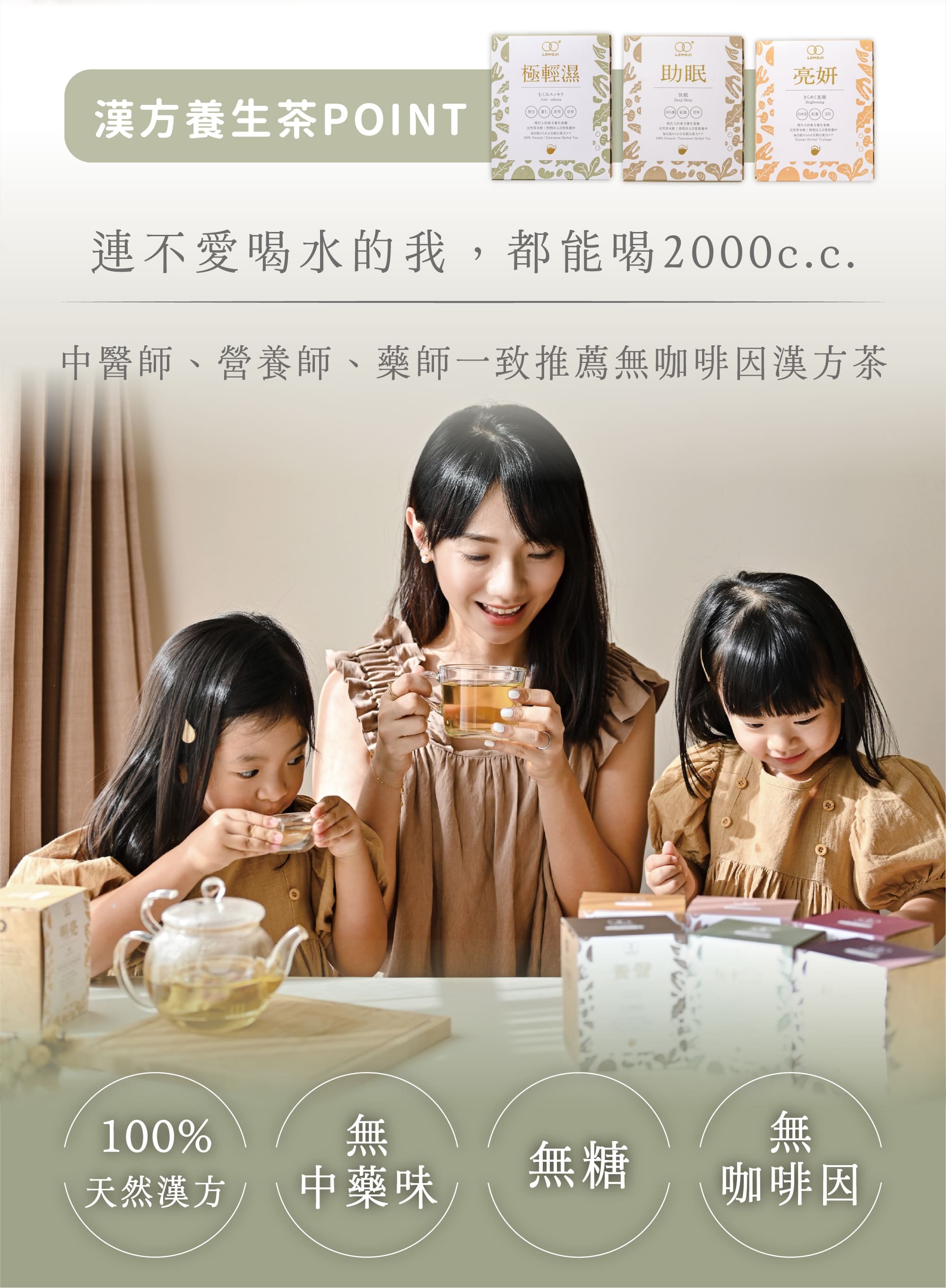 ③漢方養生茶『極輕濕、助眠、精神、明亮』4款養生口味,任選一款共10入