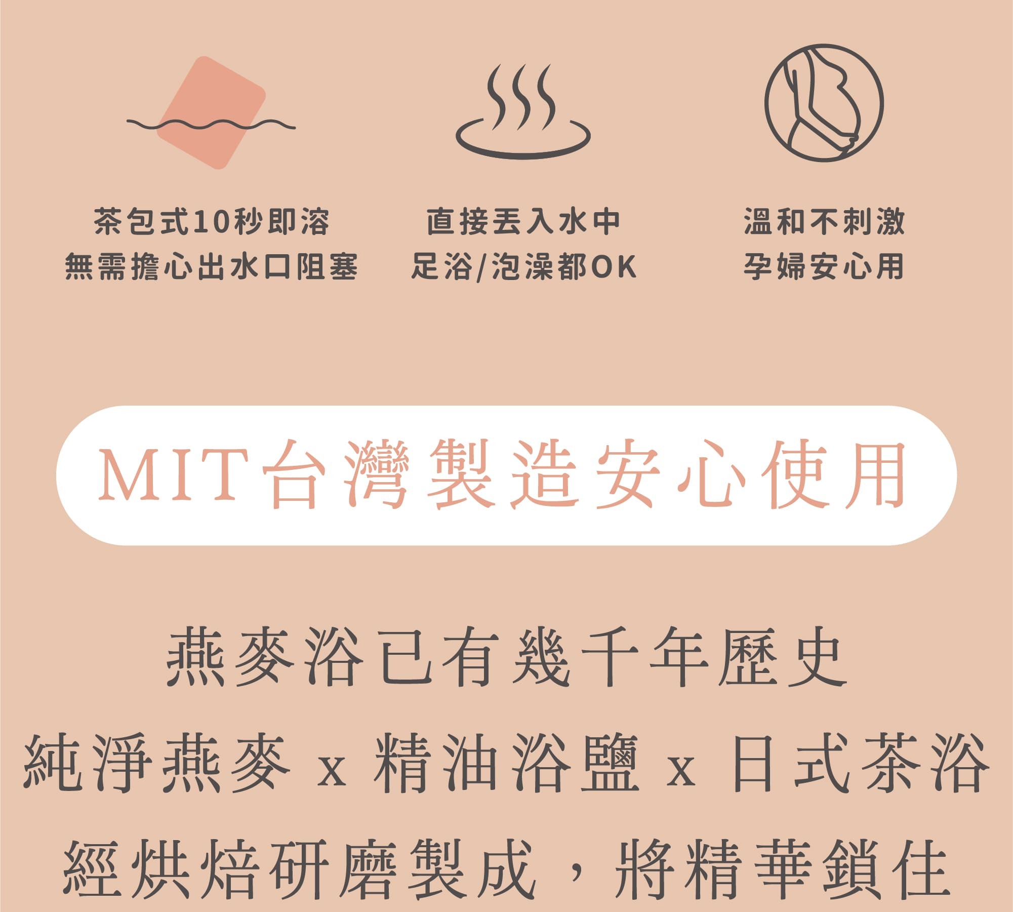 用 途│深層放鬆舒壓、去除老廢角質、促進肌膚新陳代謝、滋潤肌膚、維持肌膚健康。 用法│將美肌燕麥浴鹽包放入適量的水後稍微搓揉,待濃度釋放水中再浸泡。