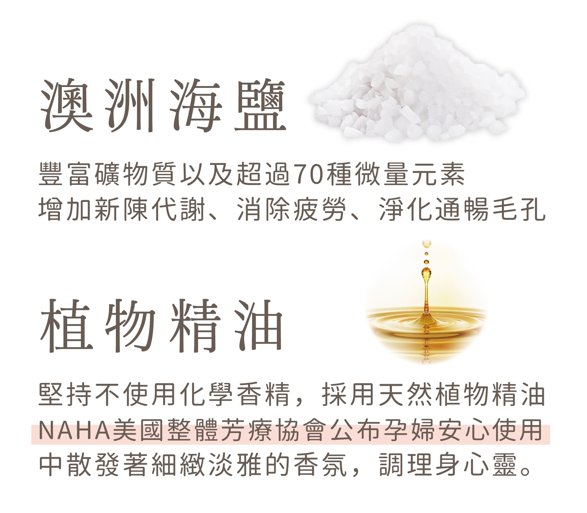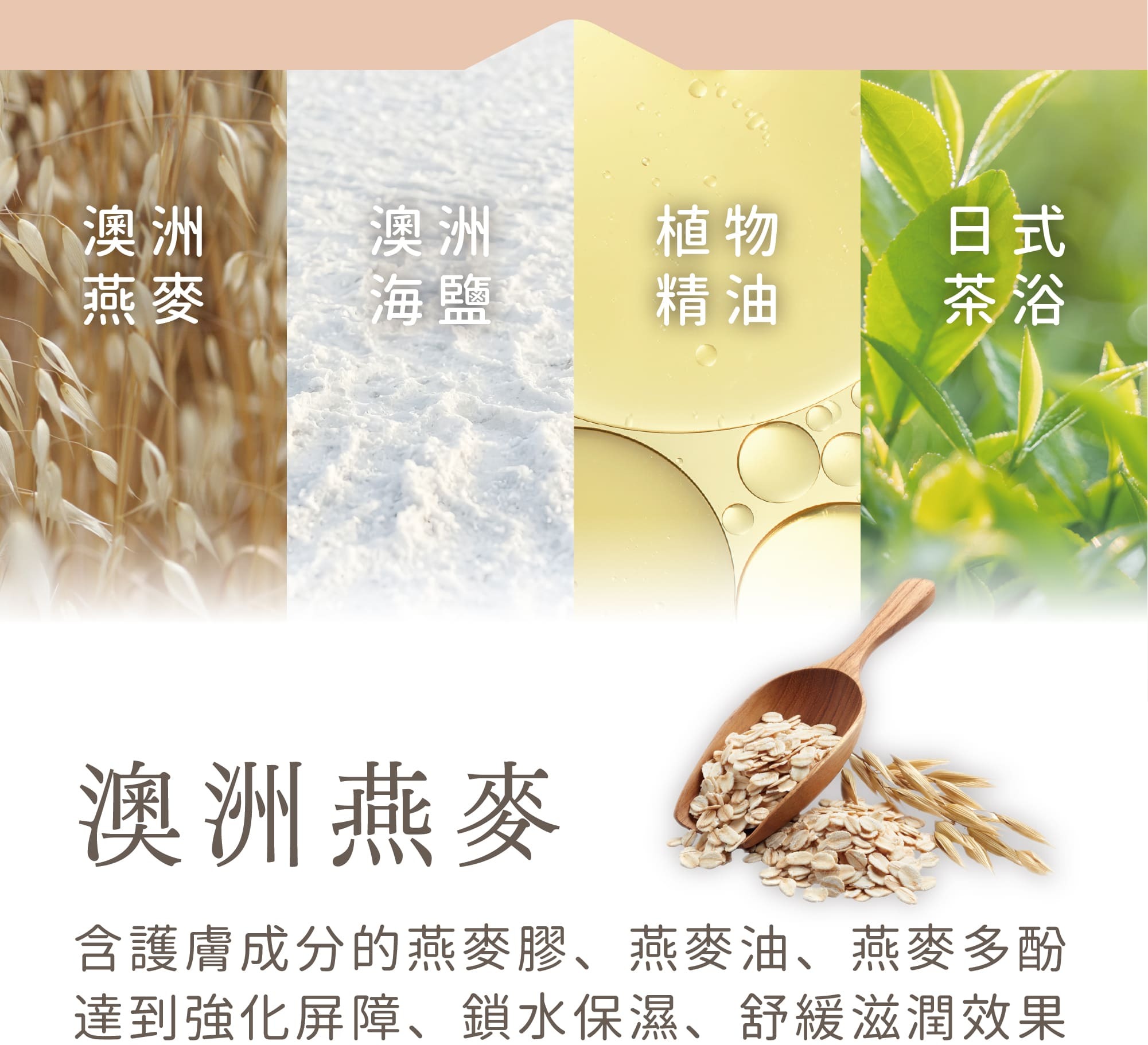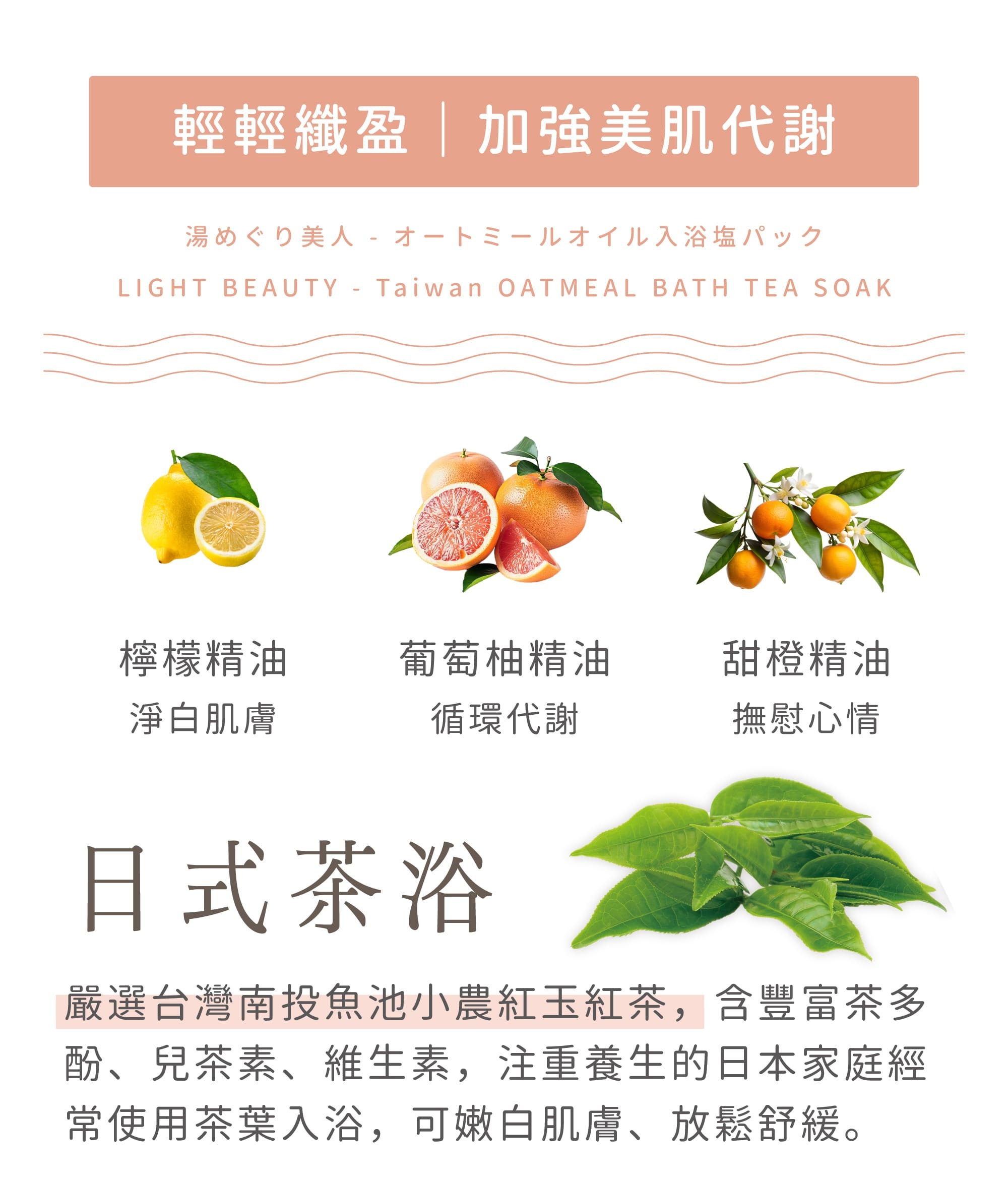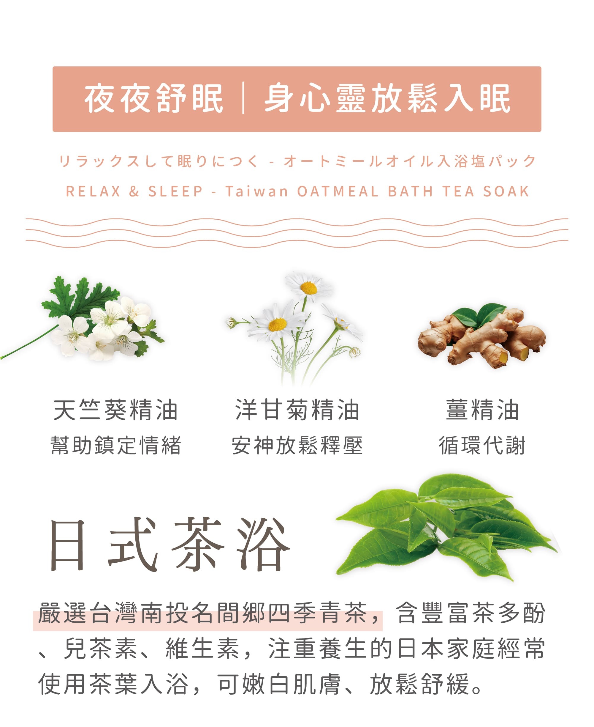 成 分│ 精油沐浴鹽、食用級燕麥粉、青茶茶葉