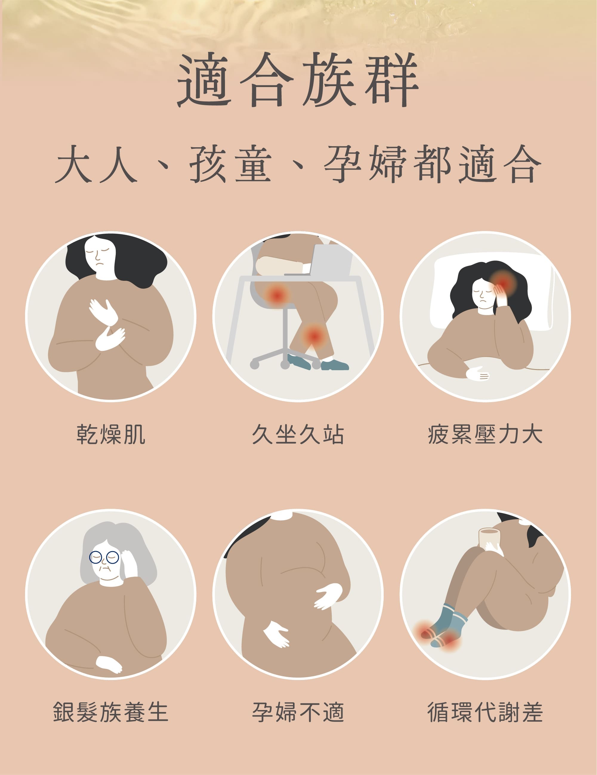 適用對象│ 忙碌緊繃、精神不濟、情緒壓力、睡眠品質不佳、不分使用年齡與膚況。