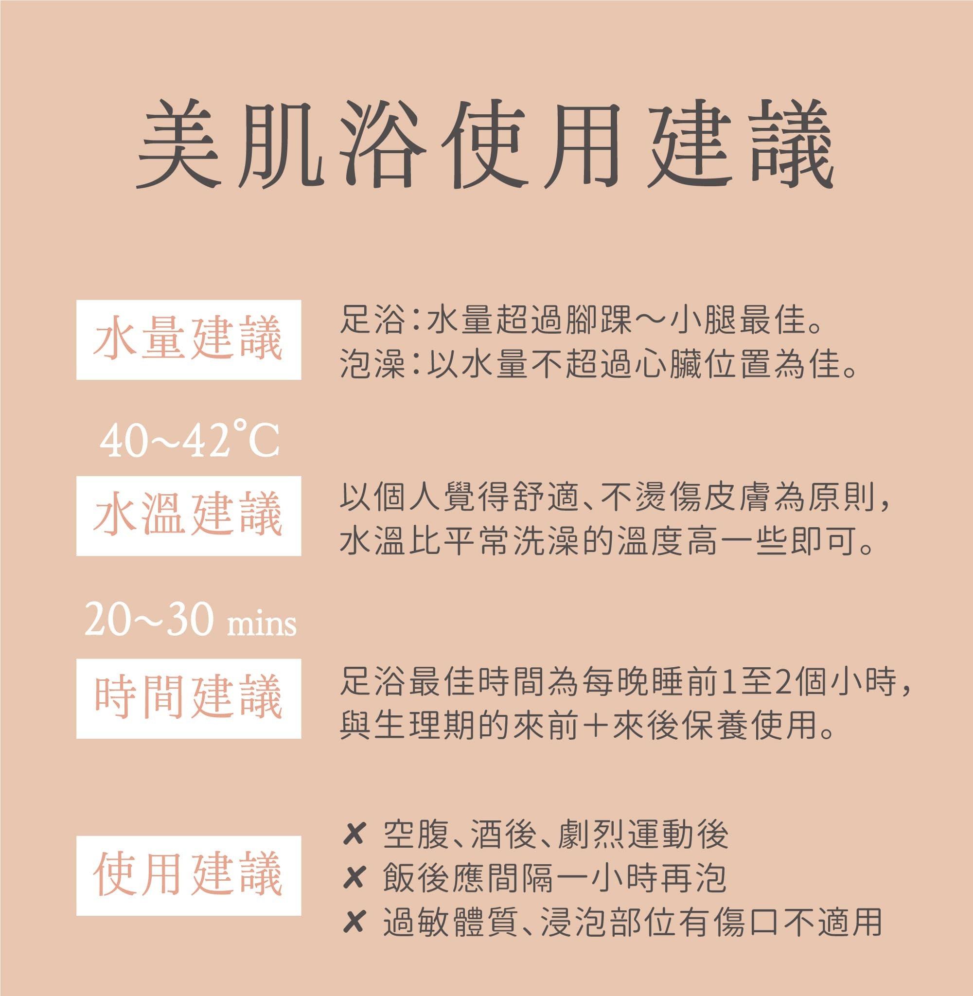 3.本產品僅用於入浴,並非飲品,請勿轉作他用。