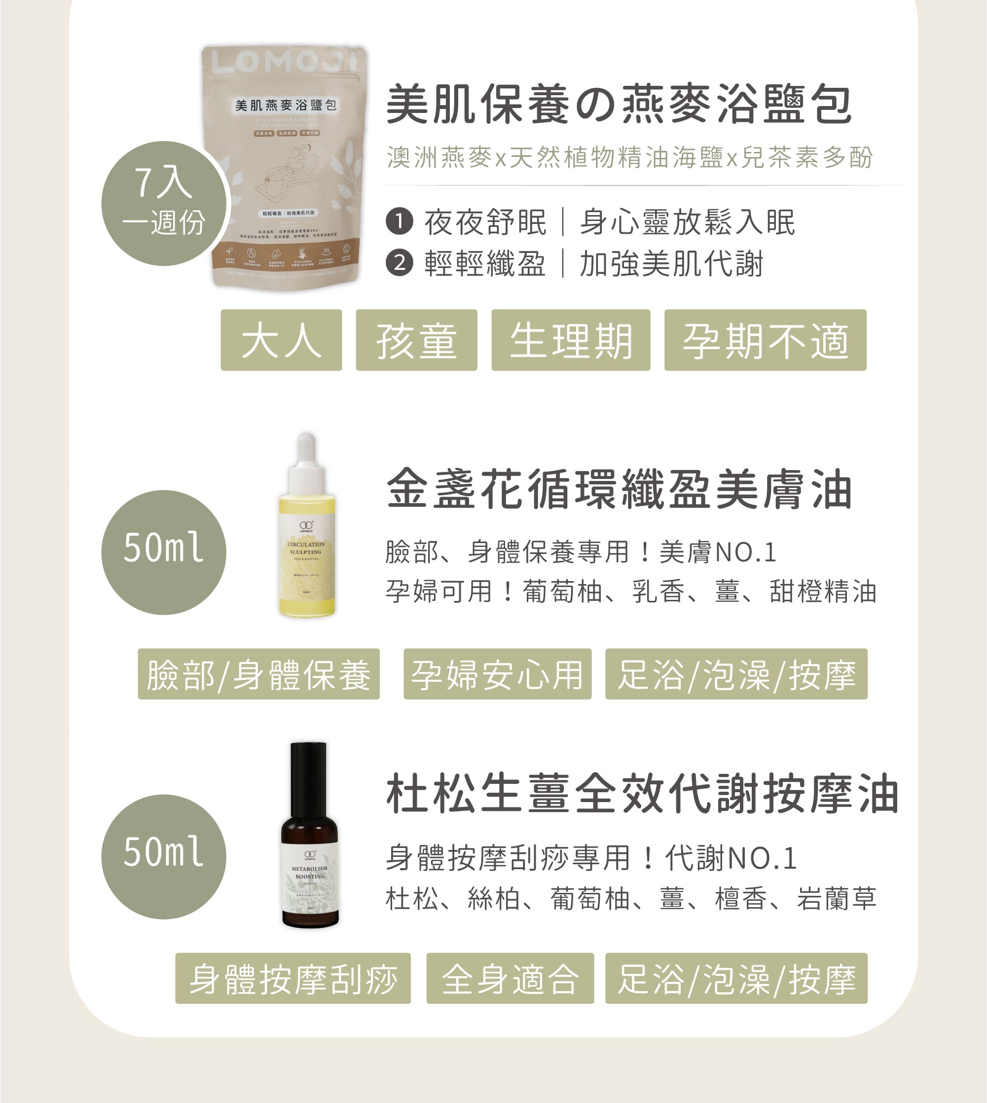 適用對象│ 忙碌緊繃、精神不濟、情緒壓力、睡眠品質不佳、不分使用年齡與膚況。溫和的草本成分友善膚質,三款皆添加艾草等穩定之漢材,『日日輕盈』特別針對想久坐久站的你,循環很差、下肢腫脹、手腳冰冷、睡眠品質不好等困擾,添加其中薑、當歸、黃耆、黨參等漢材可以幫助循環UP,合歡皮可幫助舒緩疲勞更好入睡!