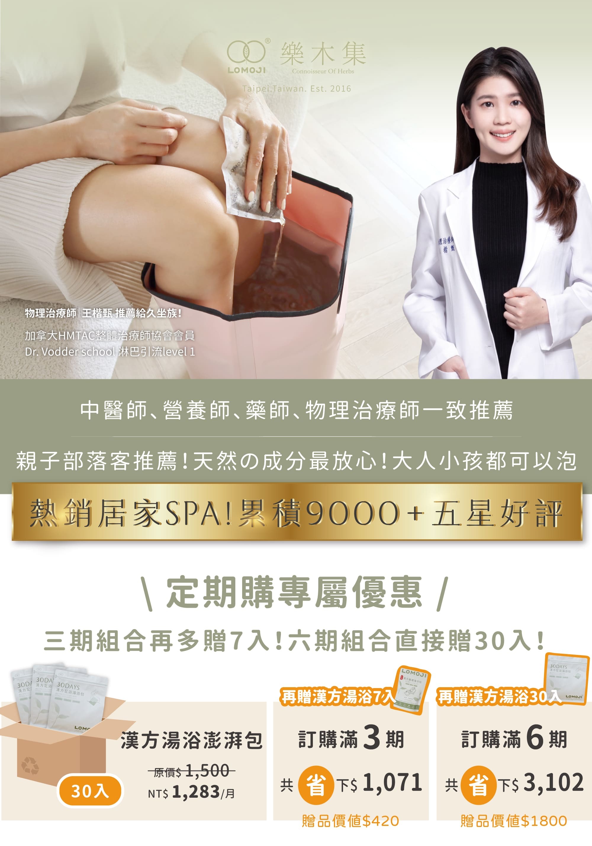 中醫藥浴已有幾千年歷史,透過古法秘傳的漢方湯浴泡腳,好處多多30天新陳代謝、循環代謝、放鬆,擔心市售入浴劑都添加化學的你,可以選擇天然的!中醫師推薦樂木集漢方泡腳,100%天然中藥材,經烘焙研磨製成,不使用任何化學方式處理,大人小孩都可以泡(泡腳放1包,泡澡放2包)經烘焙研磨製成,將藥浴精華鎖住,遇水即溶10秒散發療癒草本香氣,共有三款足浴主題/12種天然草本,無論要深層放鬆、美容保養、或輕盈健康,都可以滿足不同泡澡需求!全家都安心使用,更是久坐上班族必備!不用再去腳底按摩,在家就能SPA!
