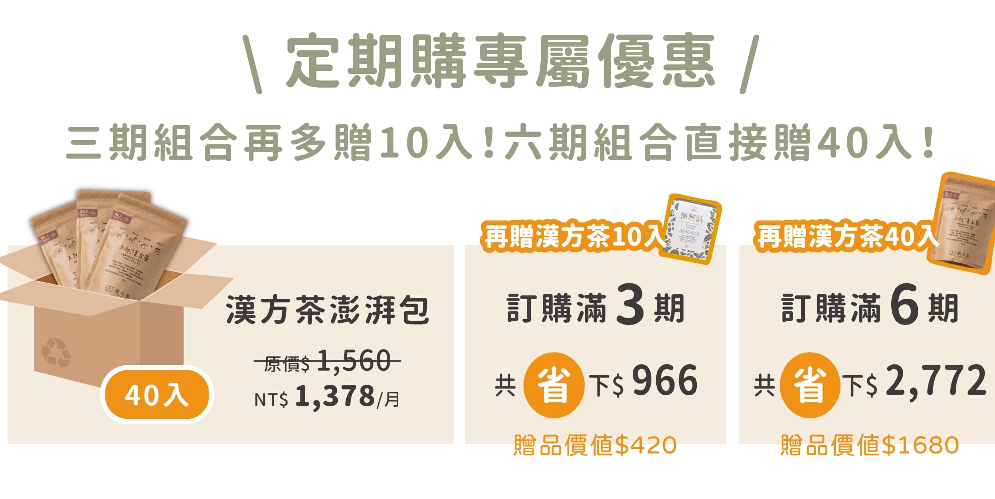 指定定期購商品,定期購專屬|滿6期 贈 漢方茶澎湃包